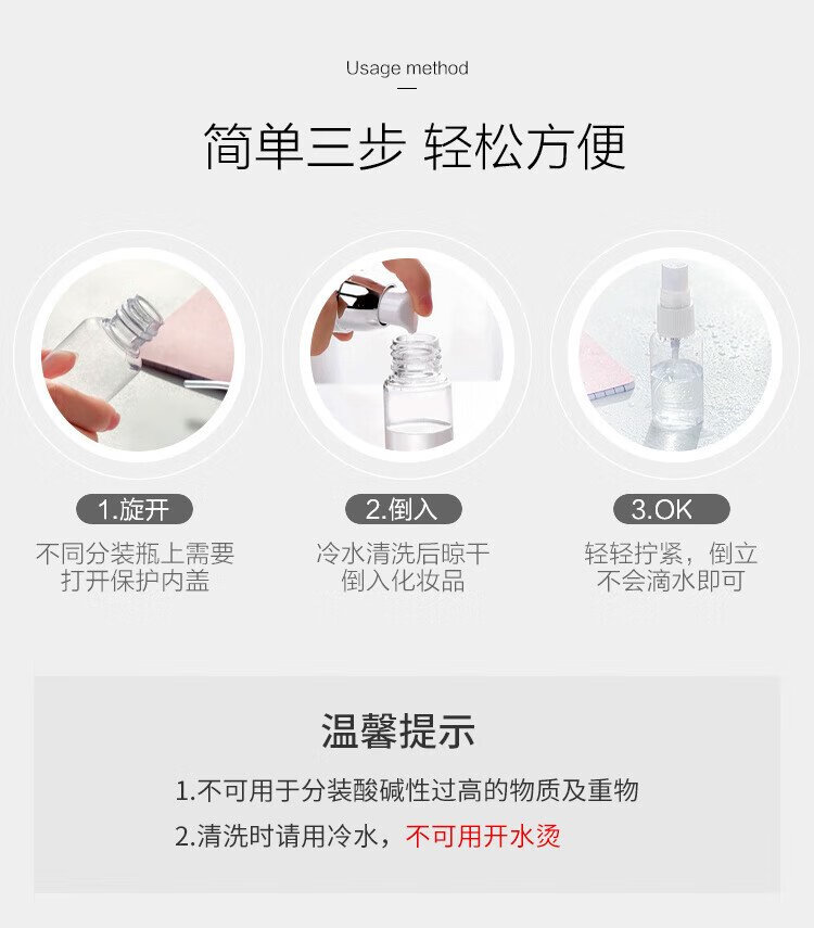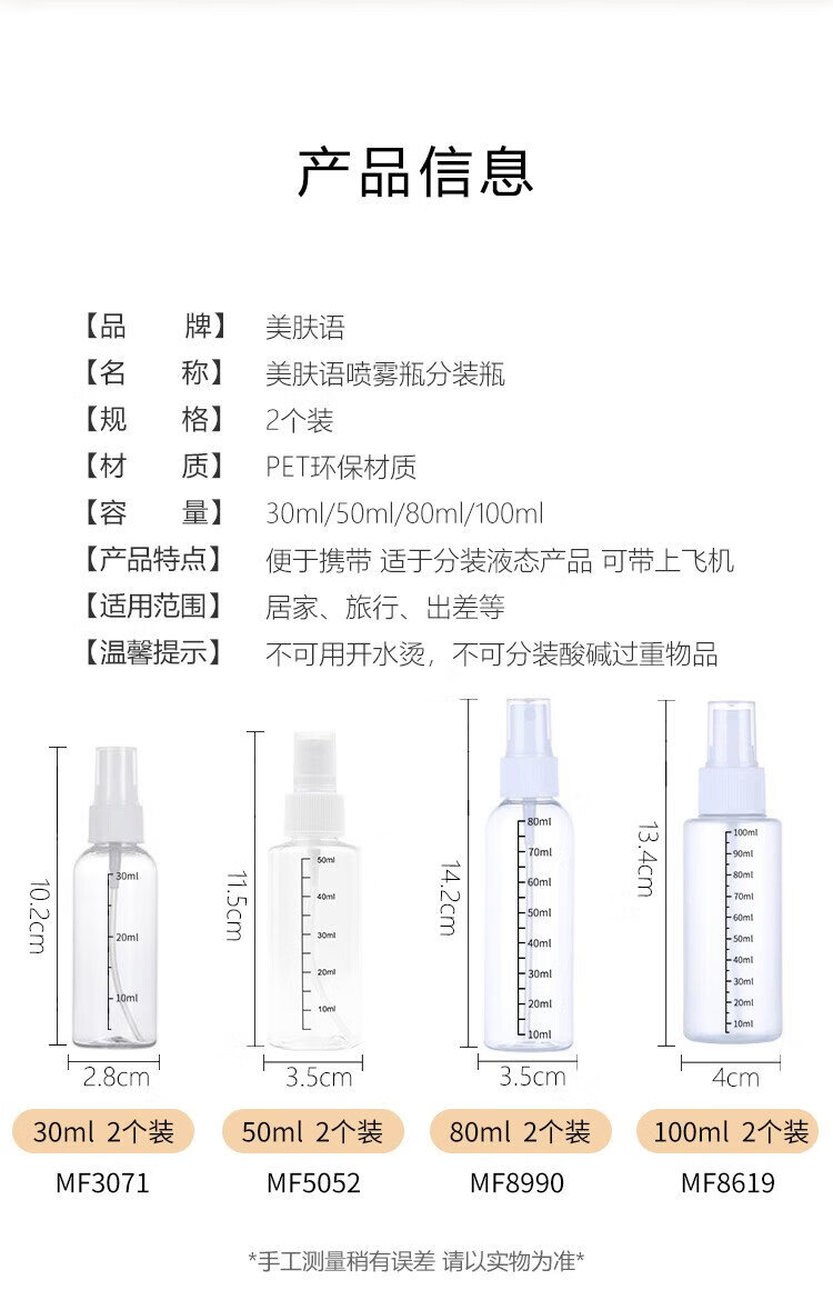Skin care spray bottle travel refill bottle 50ml*2 with graduated alcohol press small spray bottle empty bottle MF5052