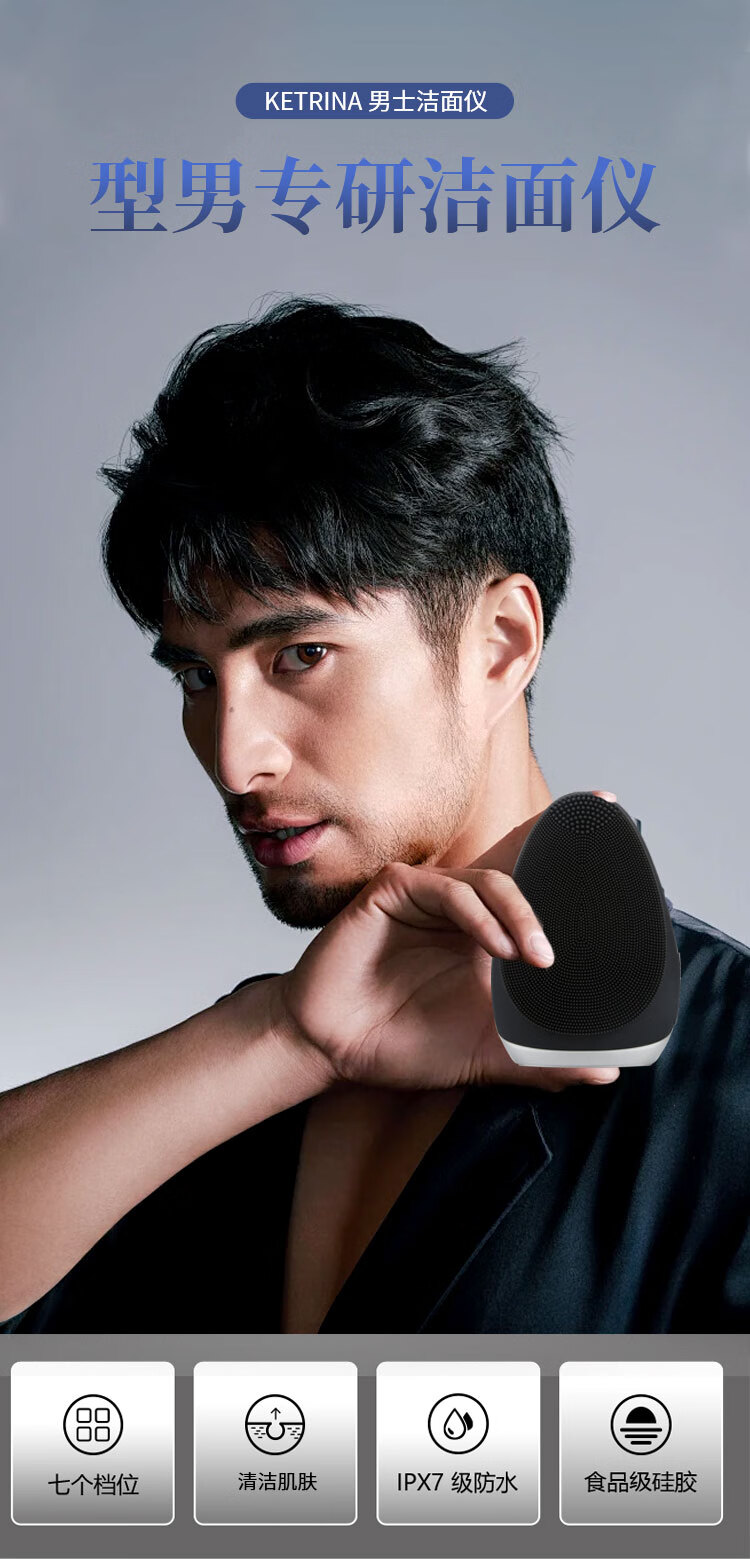 KETRINA Herren-Gesichtsreiniger, Ultraschall-Gesichtsreiniger, Silikon, elektrische Gesichtsbürste, Gesichtsreiniger, Tiefenreinigung, 7 Stufen, stärkere Reinigungskraft, Herren-Sonic-Silikon-Gesichtsreiniger