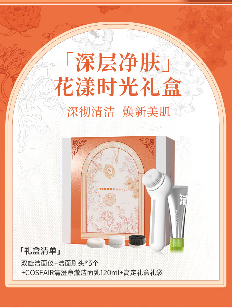 TOUCHBeauty facial cleansing artifact, electric facial cleansing instrument, pore cleaning artifact, safe and does not hurt skin, oily and acne-sensitive skin, can be used as a birthday gift to girlfriend and wife, whitening, positive and negative double rotation deep cleansing