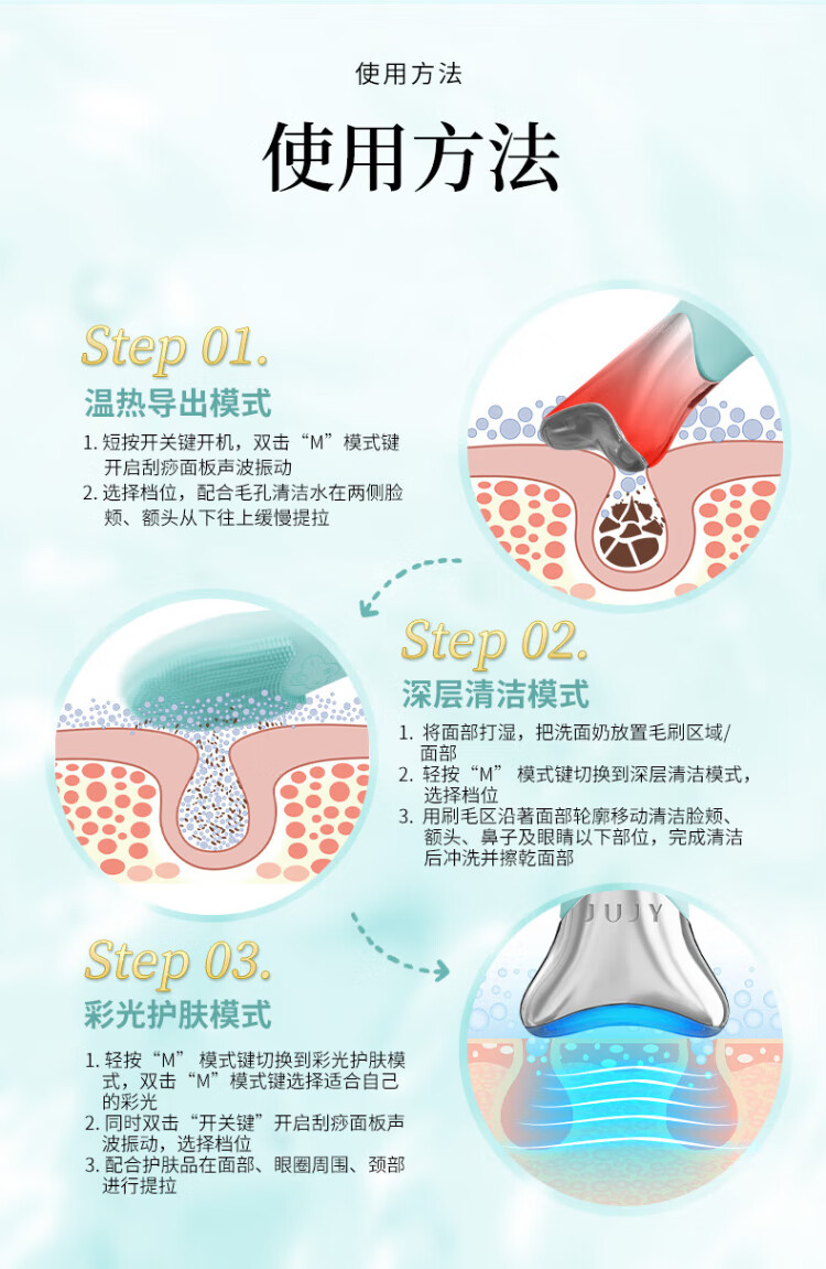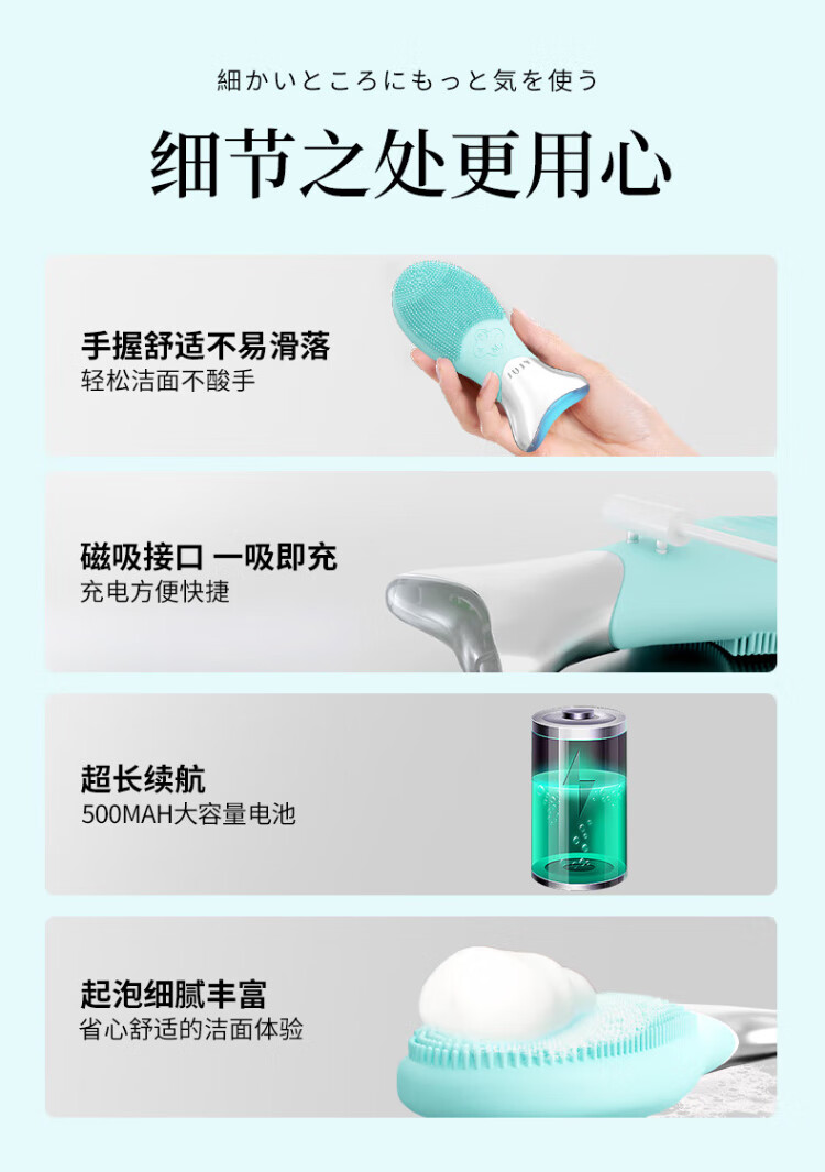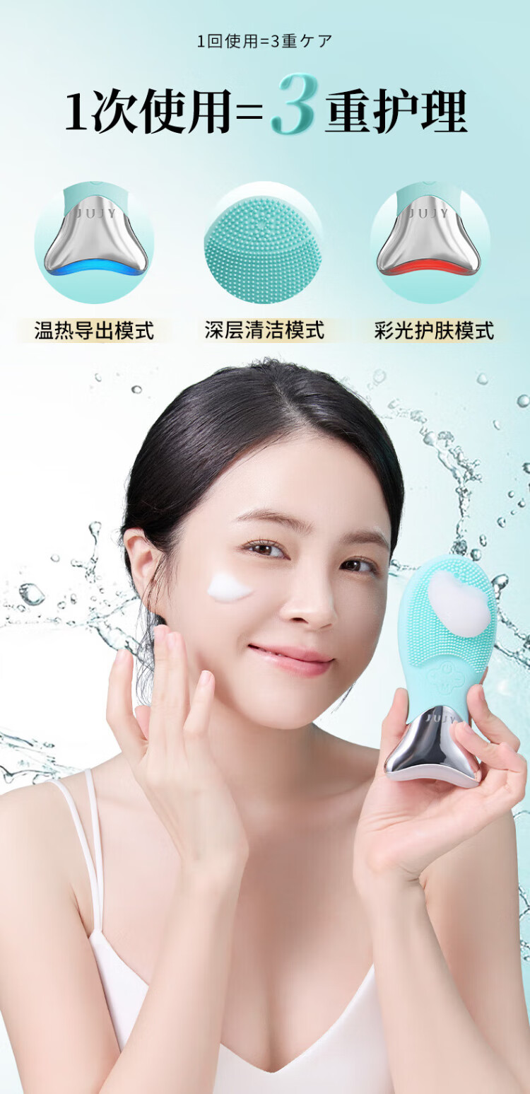 JUJY Ji Zhi Facial Washing Instrument Ultrasonic Silicone Facial Cleansing Instrument Cleansing, Beauty and Purifying JUJY Light Green