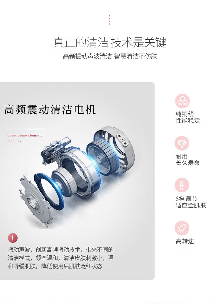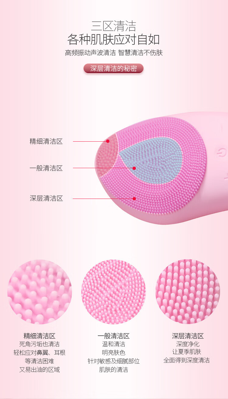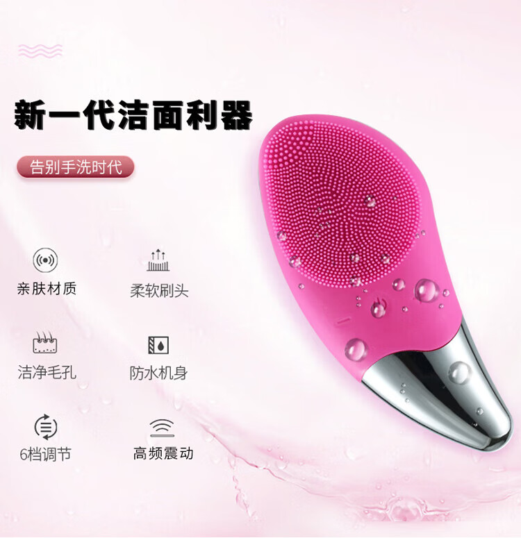 Yupinjia Electric Facial Cleanser Facial Cleanser Facial Cleanser Facial Brush Cleans Pores Silicone Waterproof Electric Face Wash Beauty Men and Women Pore Deep Cleansing Blackheads Chinese Valentine's Day Gift 6-level Adjustment + Soft Material + High-Frequency Vibration Pink