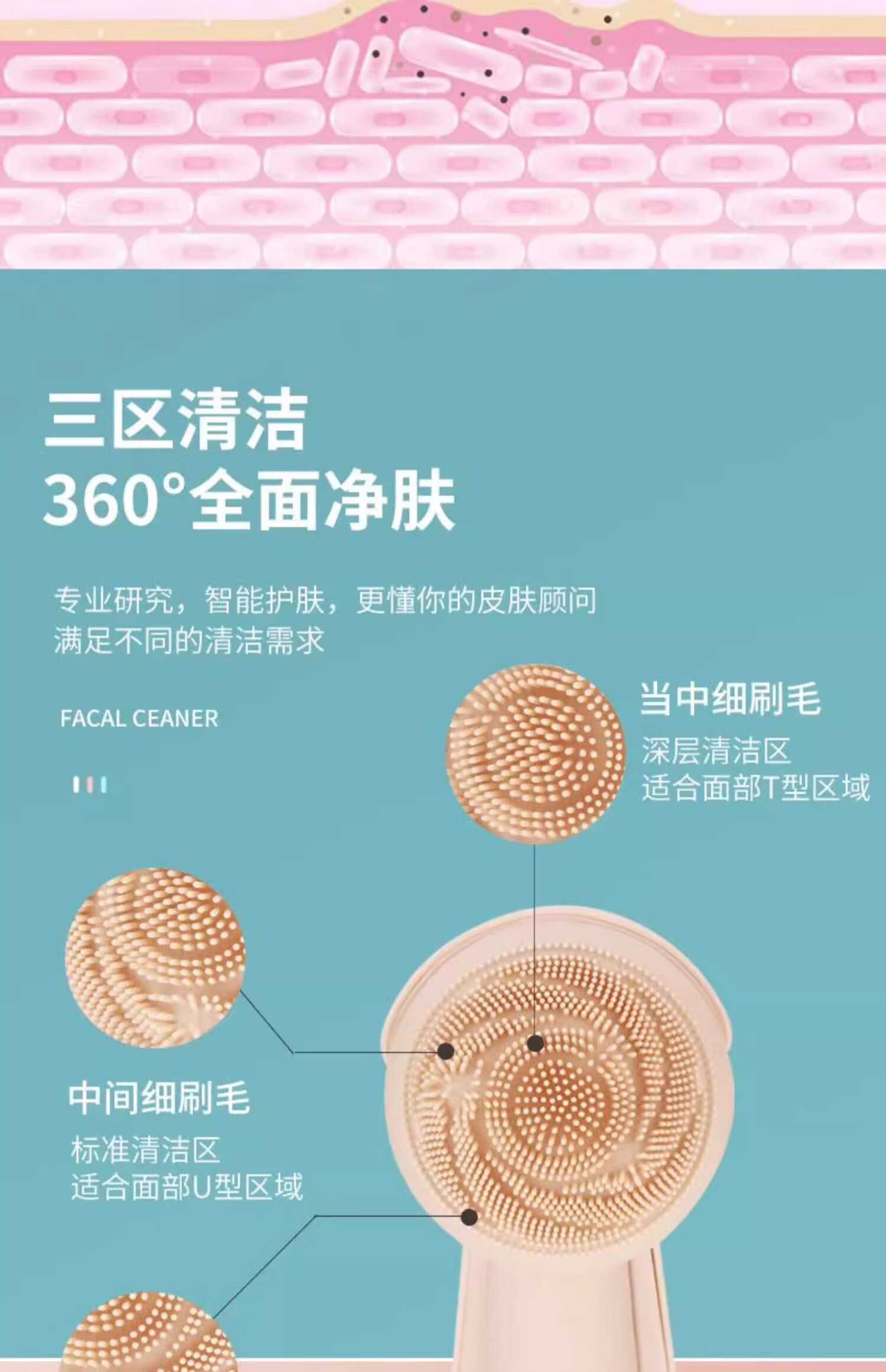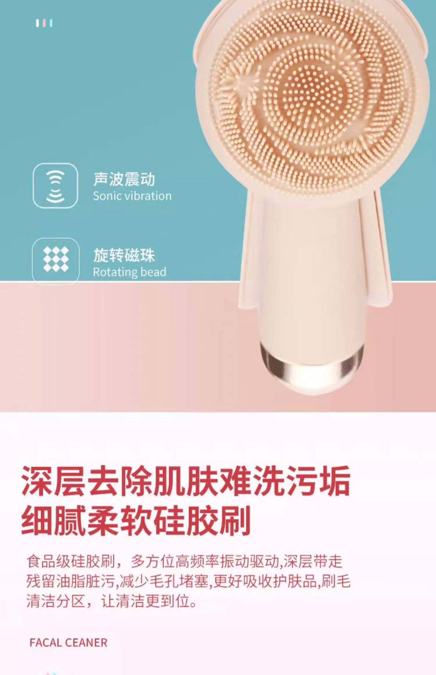 Electric face wash and cleansing device to remove blackheads, silicone brush, pore cleaning artifact, household ultrasonic vibration massage for men and women, beige, rechargeable (vibration + rotation mode)