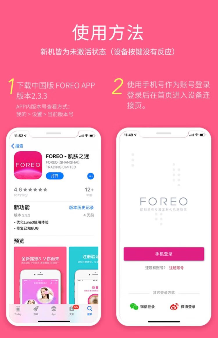 FOREO LUNA mini 3 cleansing instrument, balanced oil facial cleansing instrument, electric pore cleansing instrument, pink