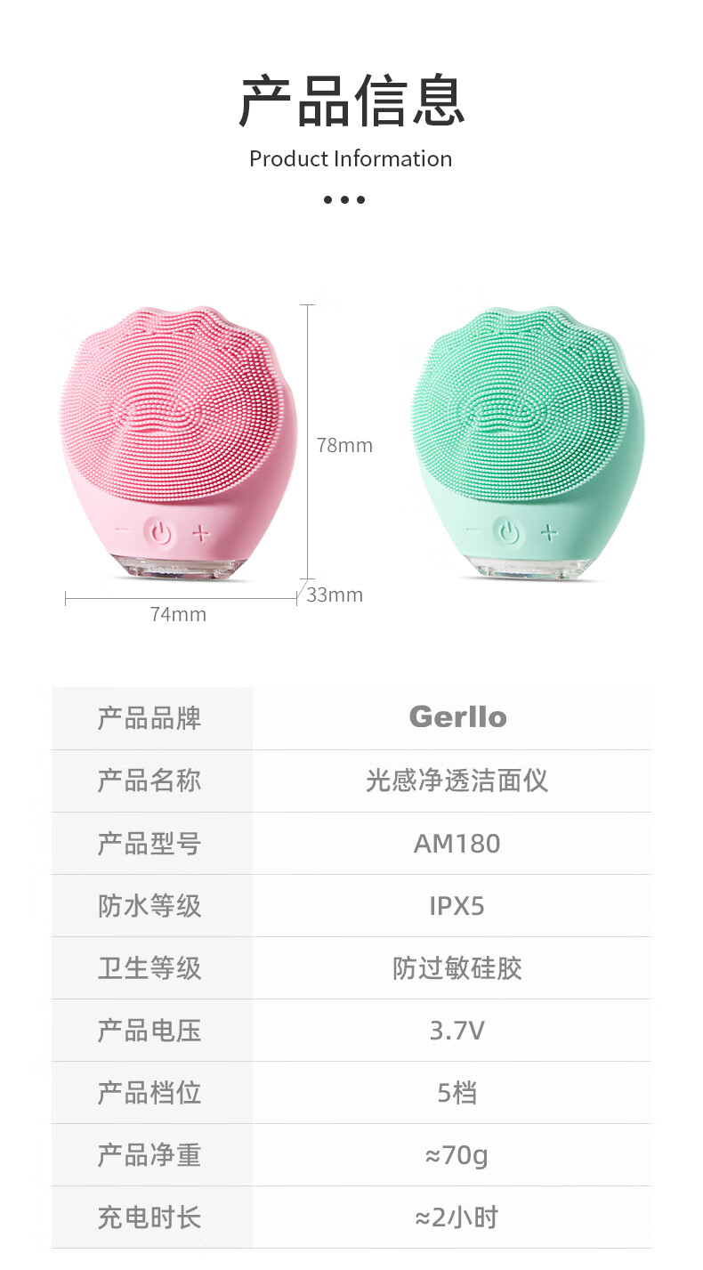 Gerllo Facial Cleansing Instrument Electric Pore Cleansing Facial Washing Instrument as a Birthday Gift for My Girlfriend Pink High Frequency Vibration 5-level Adjustment