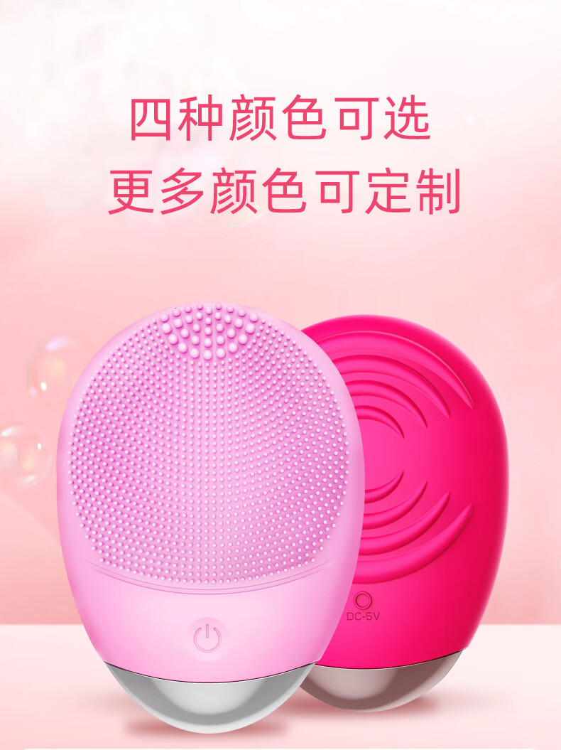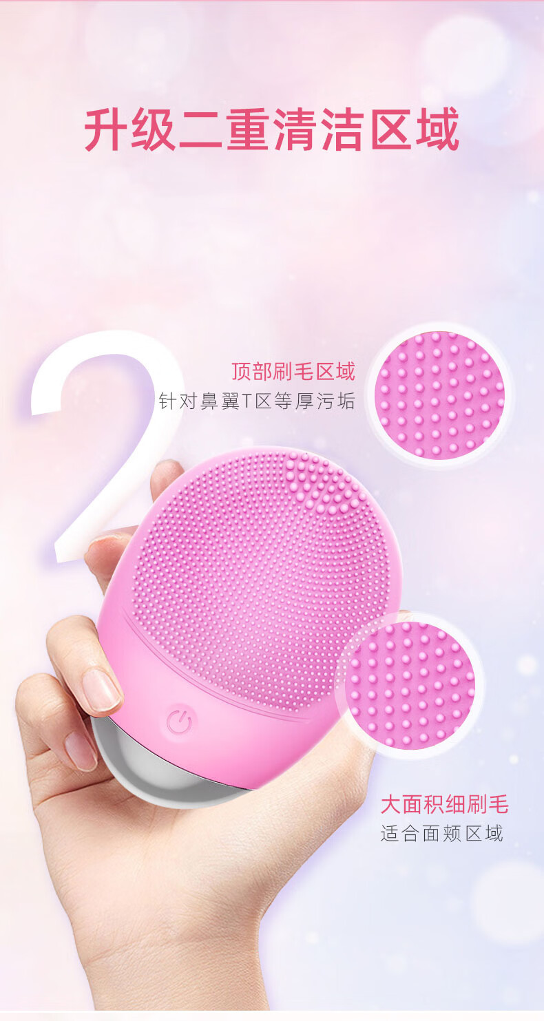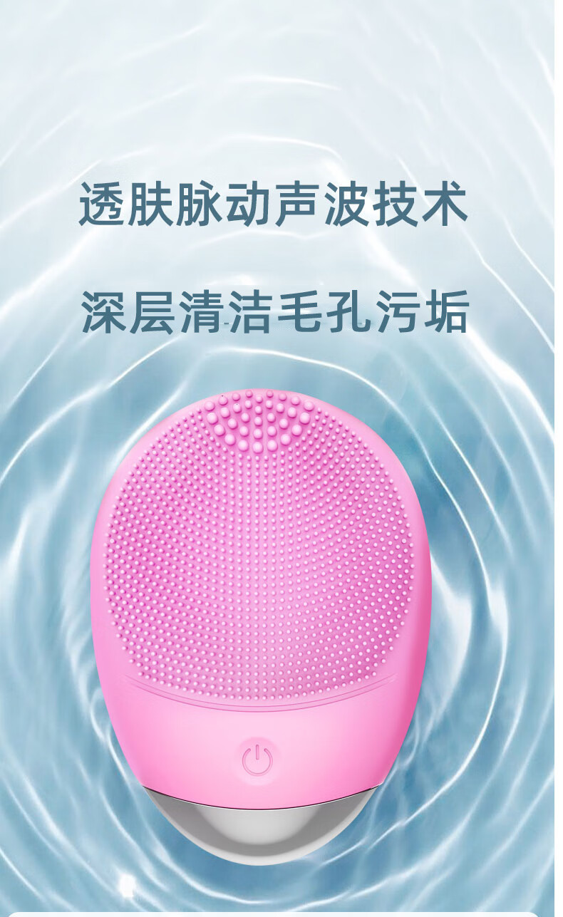 FODRK Egg Facial Washing Instrument Magic Electric Ultrasonic Facial Cleansing Instrument Unisex Pore Cleaner Facial Blackhead Remover Massage Facial Washing Brush 6-level Adjustment + Soft Material + High-Frequency Vibration Pink