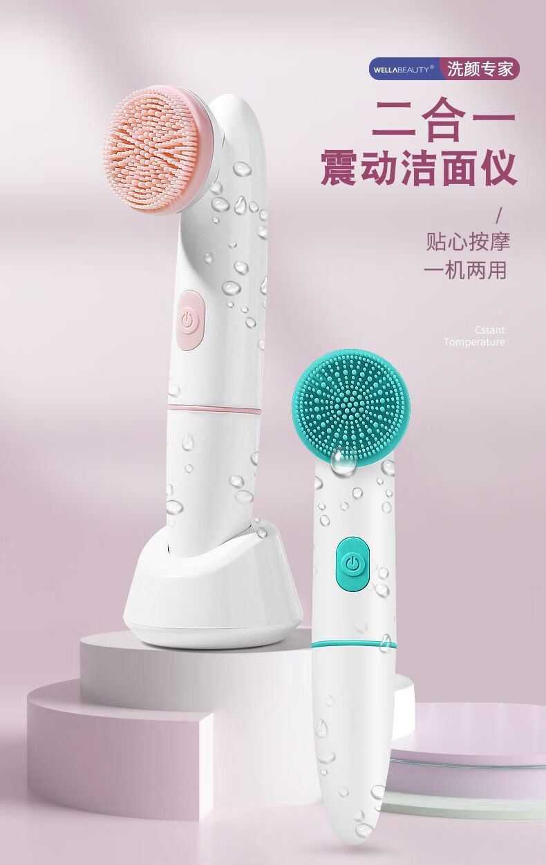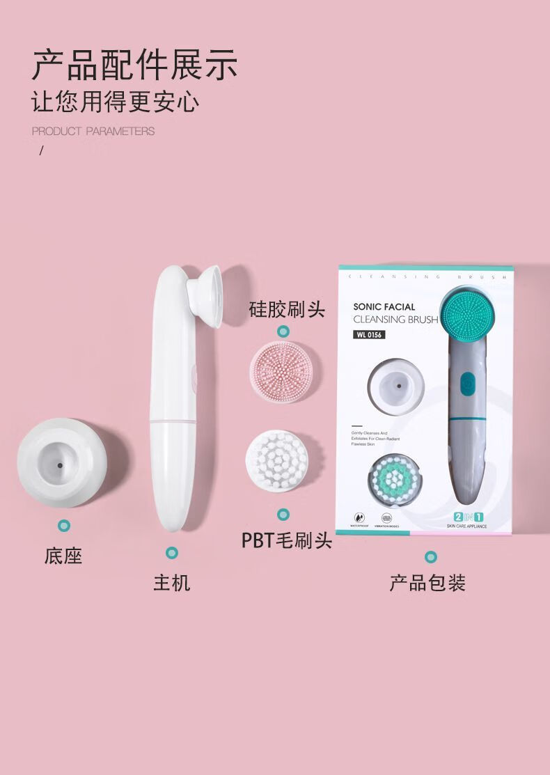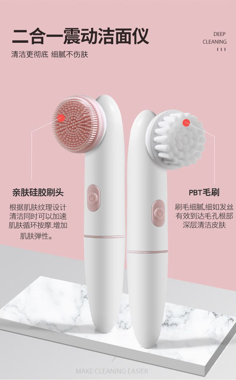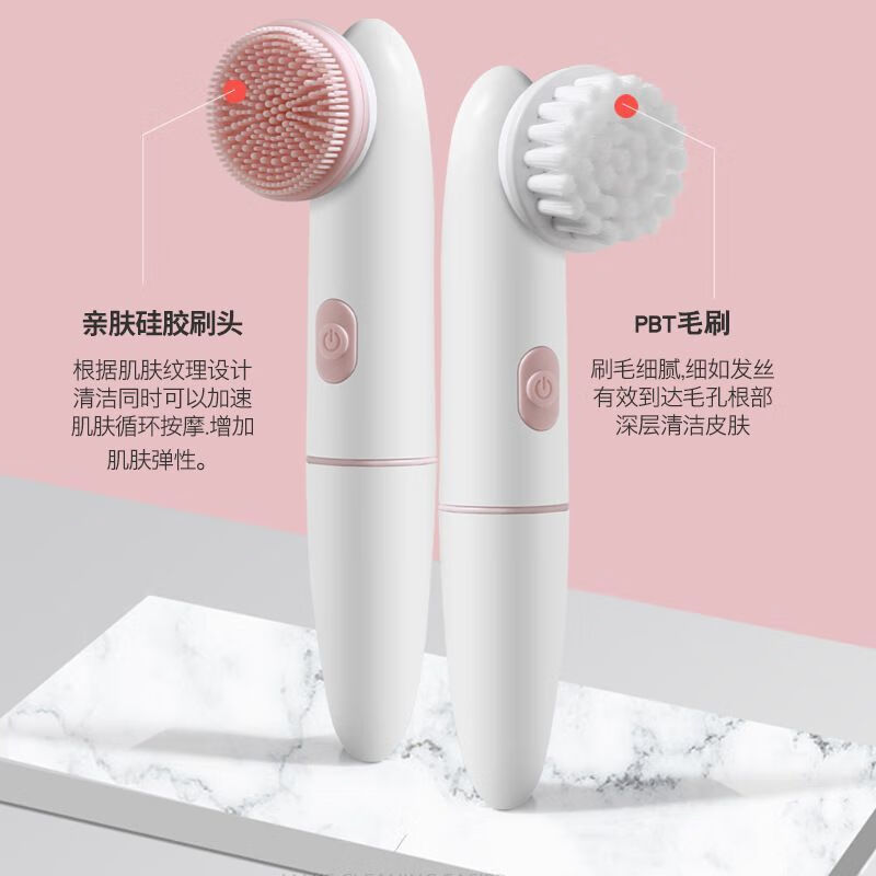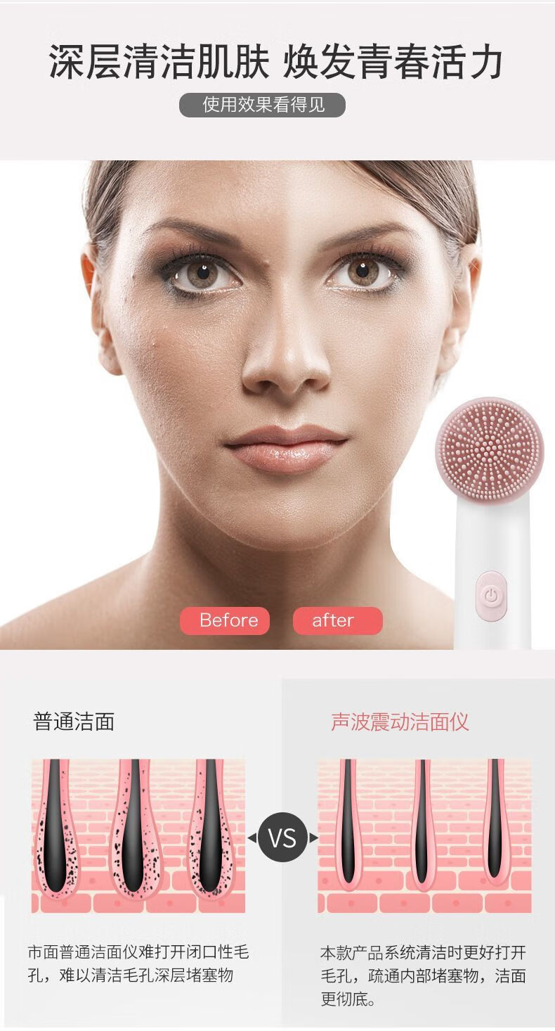 KYODO electric face wash instrument for deep cleaning, new ultrasonic silicone facial cleanser, face brush, facial pore cleaning artifact, beauty instrument, pink