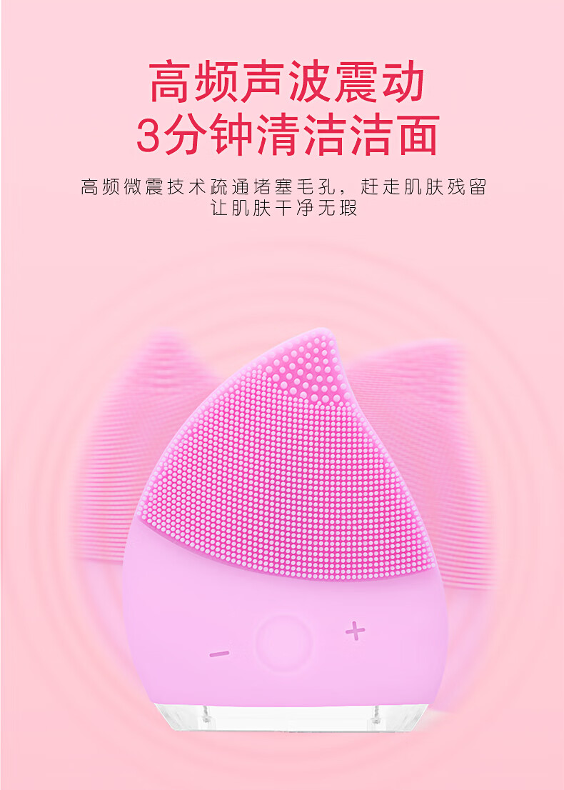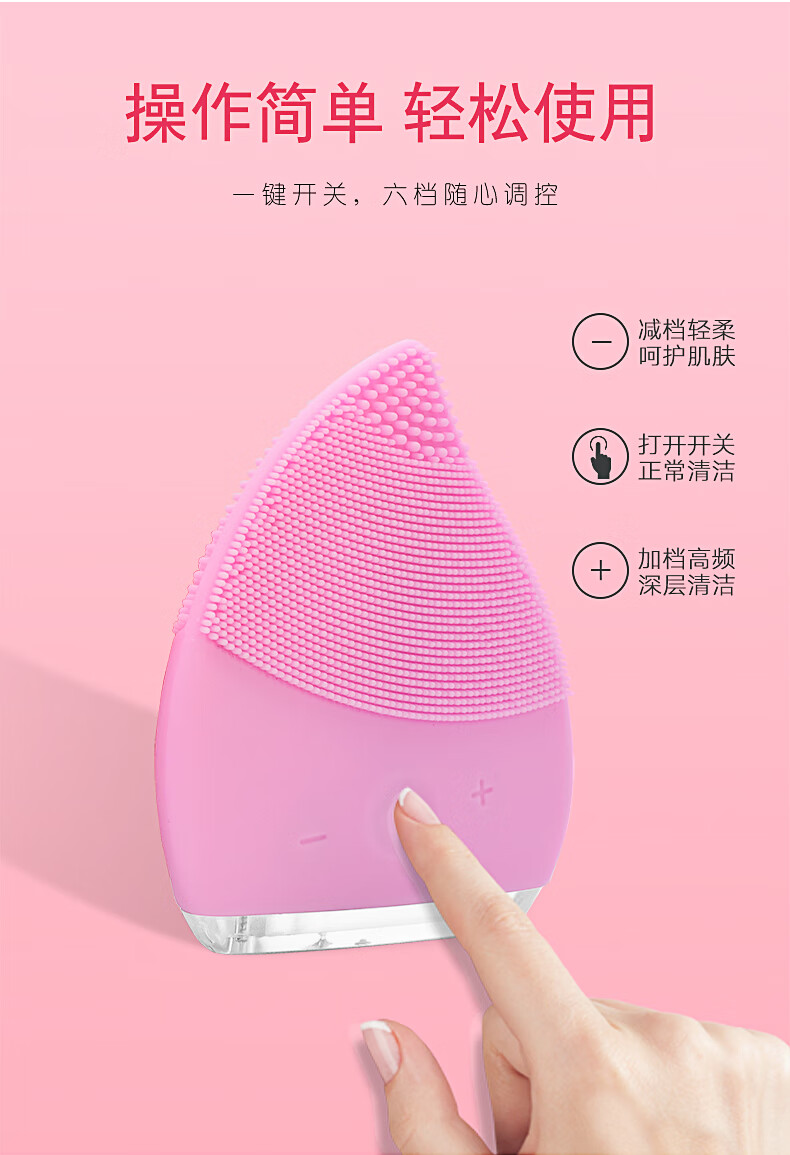 Jiabeimei Elektrischer Silikon-Gesichtsreiniger, wasserdicht, Ultraschall-Artefakt, Schönheitsinstrument, Gesichtsreinigungsbürste, Rosenrot