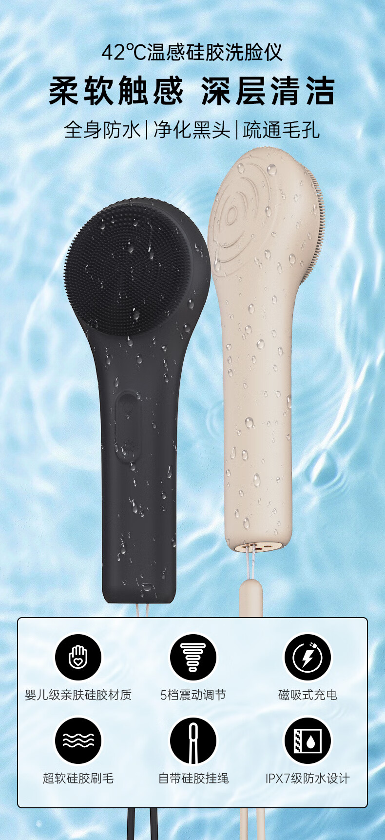 Mouli Electric Facial Cleanser Facial Washer Pore Cleaner Facial Cleanser Deep Cleansing Silicone Face Wash Brush Skin Rejuvenation Pink Skin Friendly Silicone + 5-level Vibration Adjustment