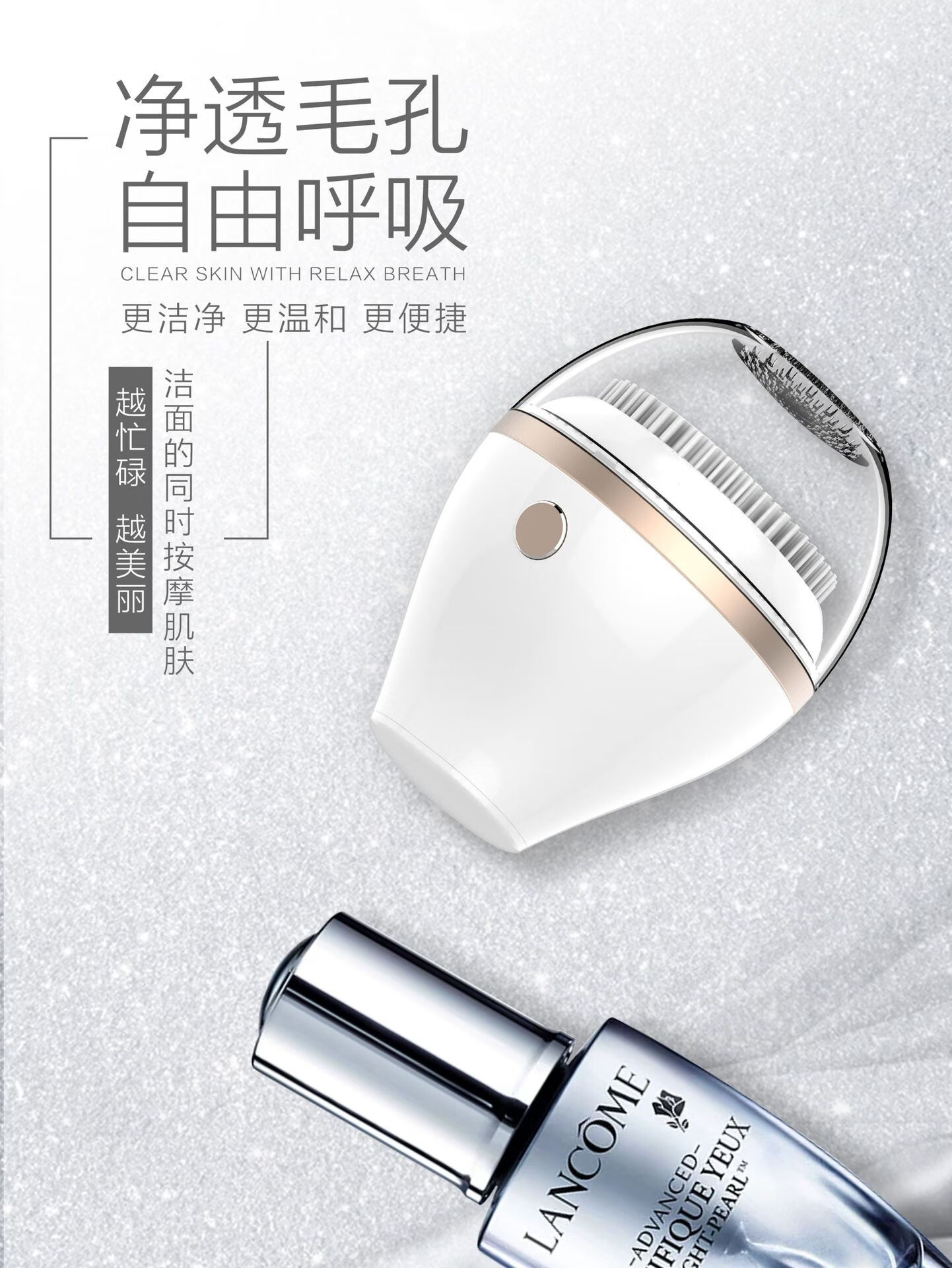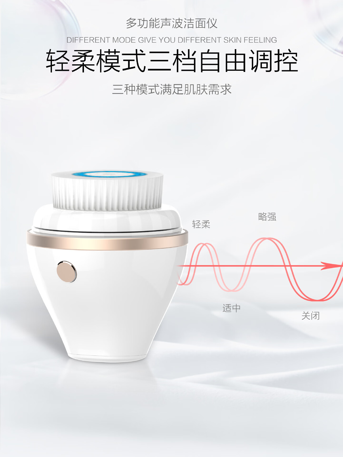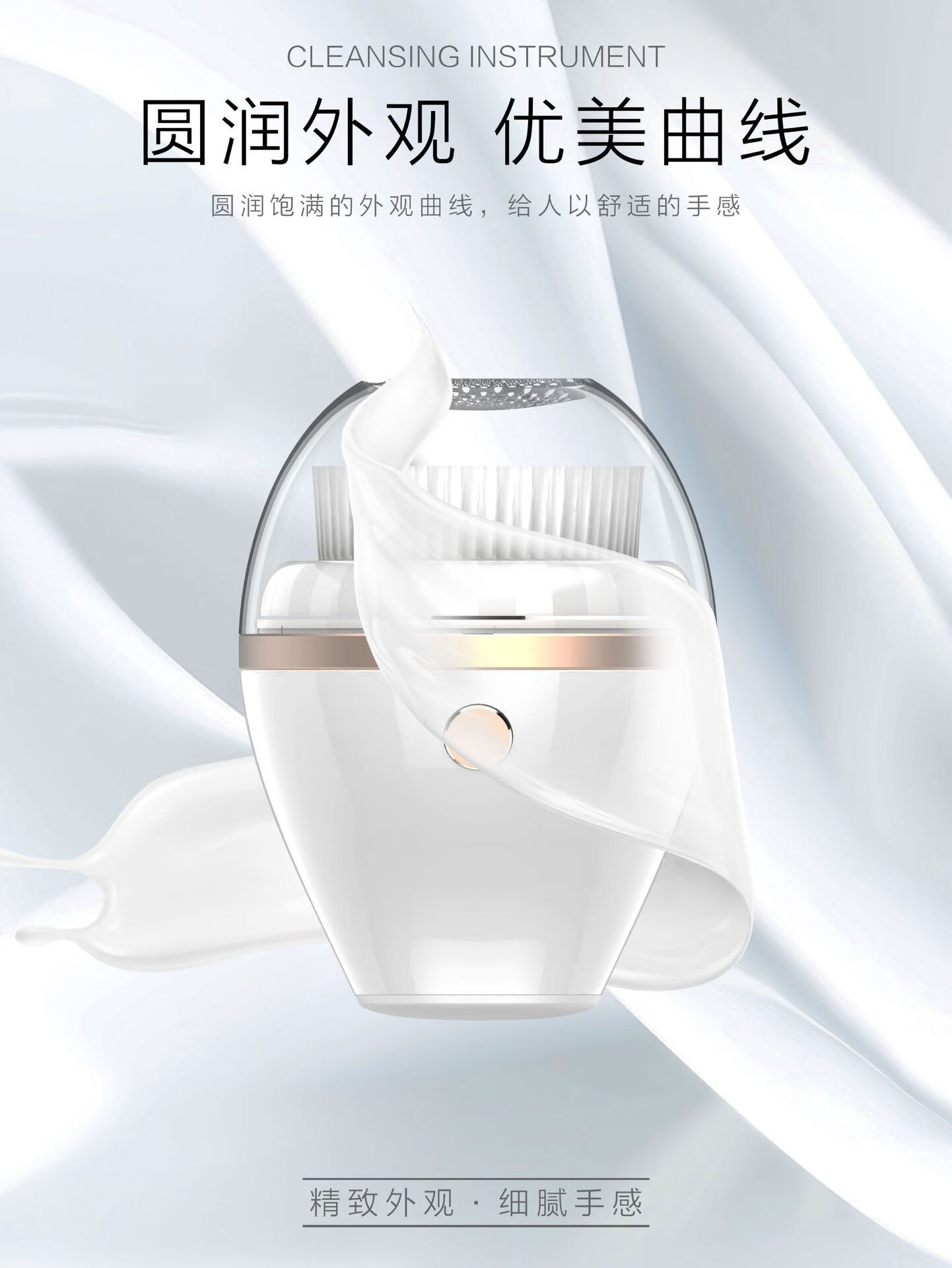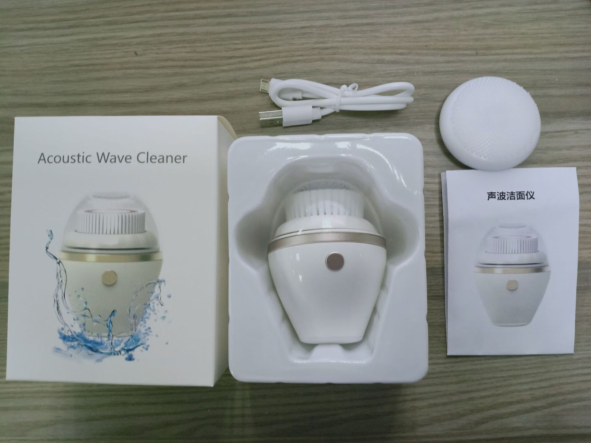Excellently selected electric facial cleanser, ultrasonic facial cleanser, silicone facial cleansing brush, two types of facial brush heads from the manufacturer, ivory white brush head - vibrating type