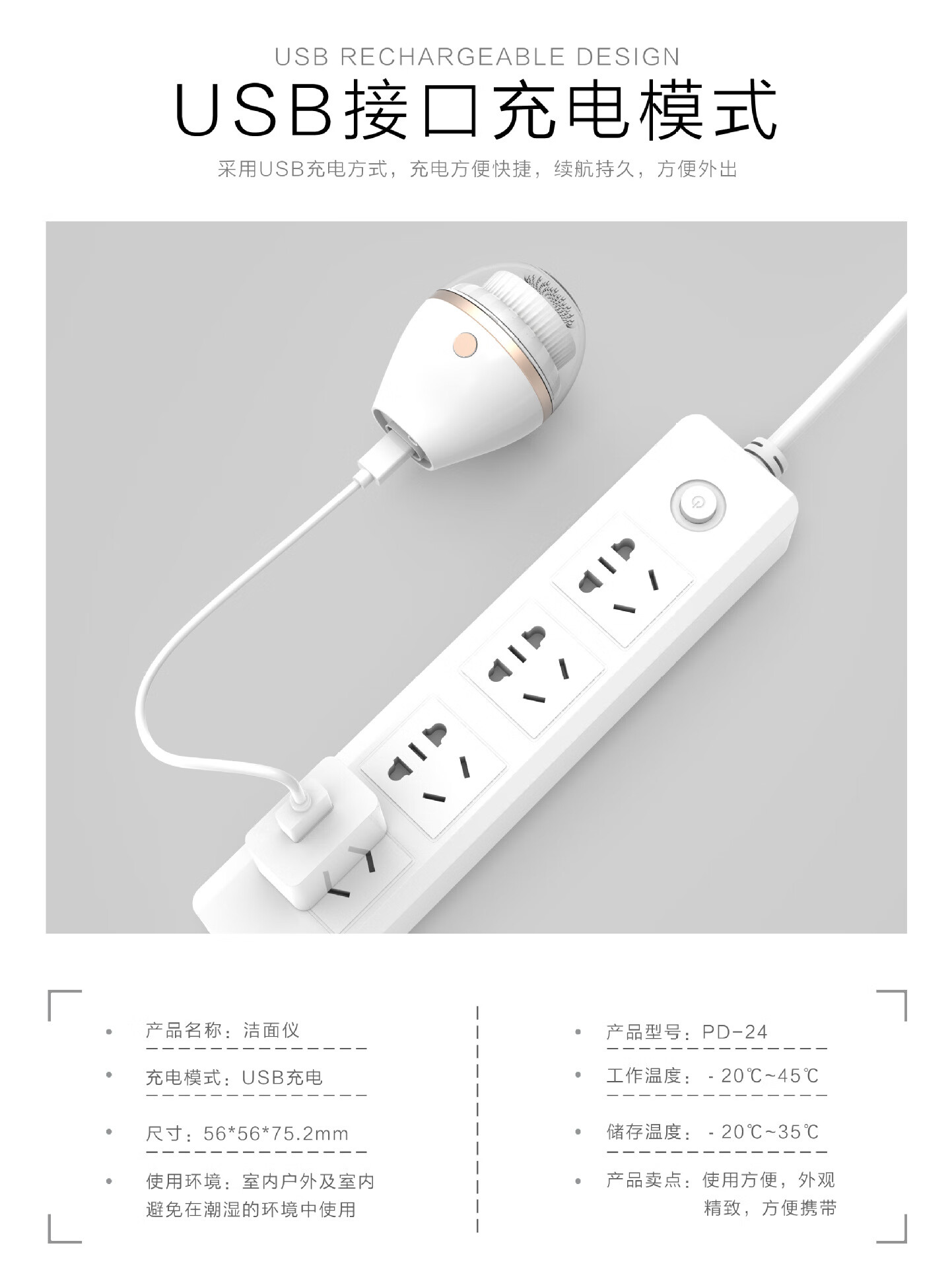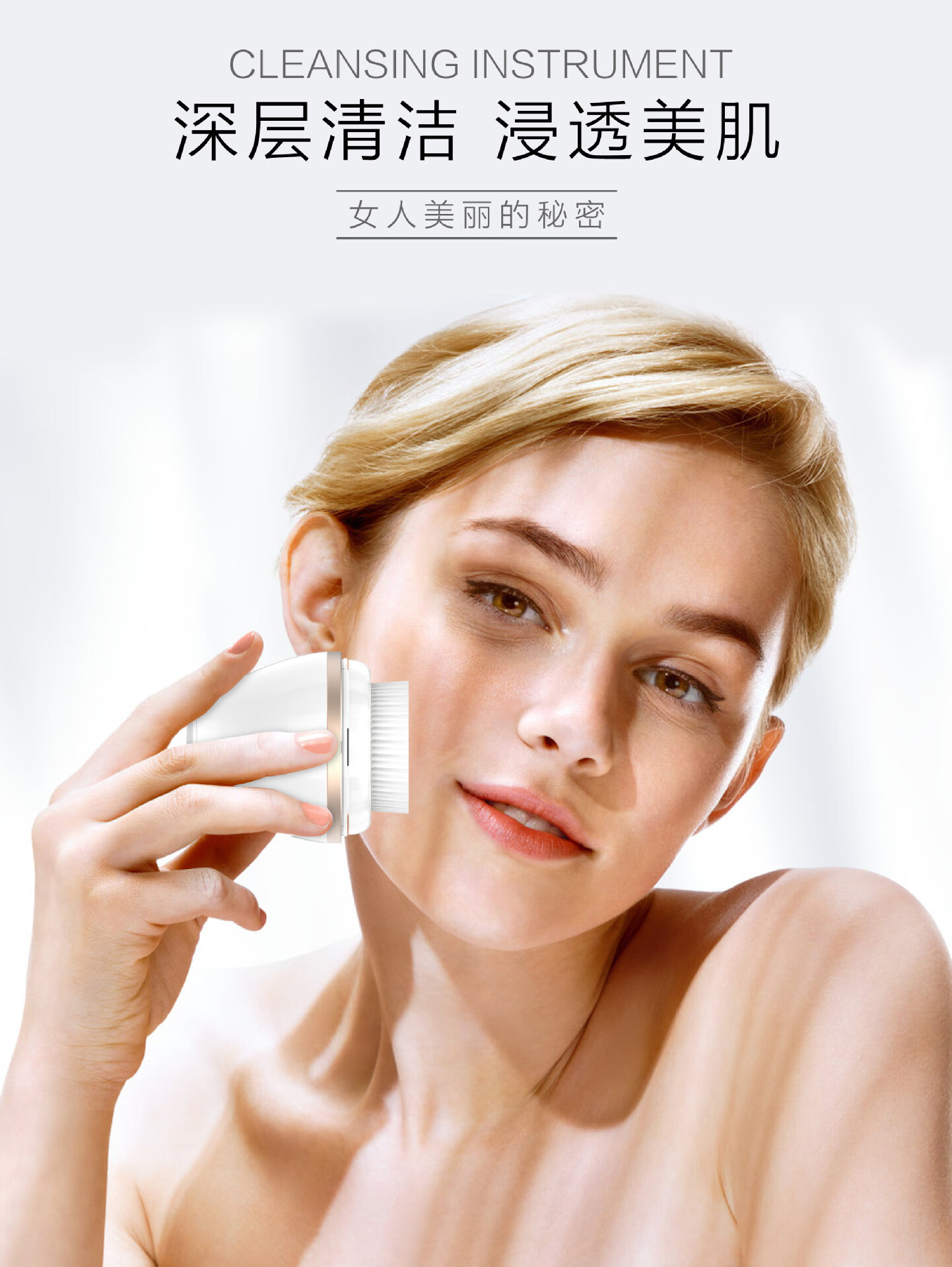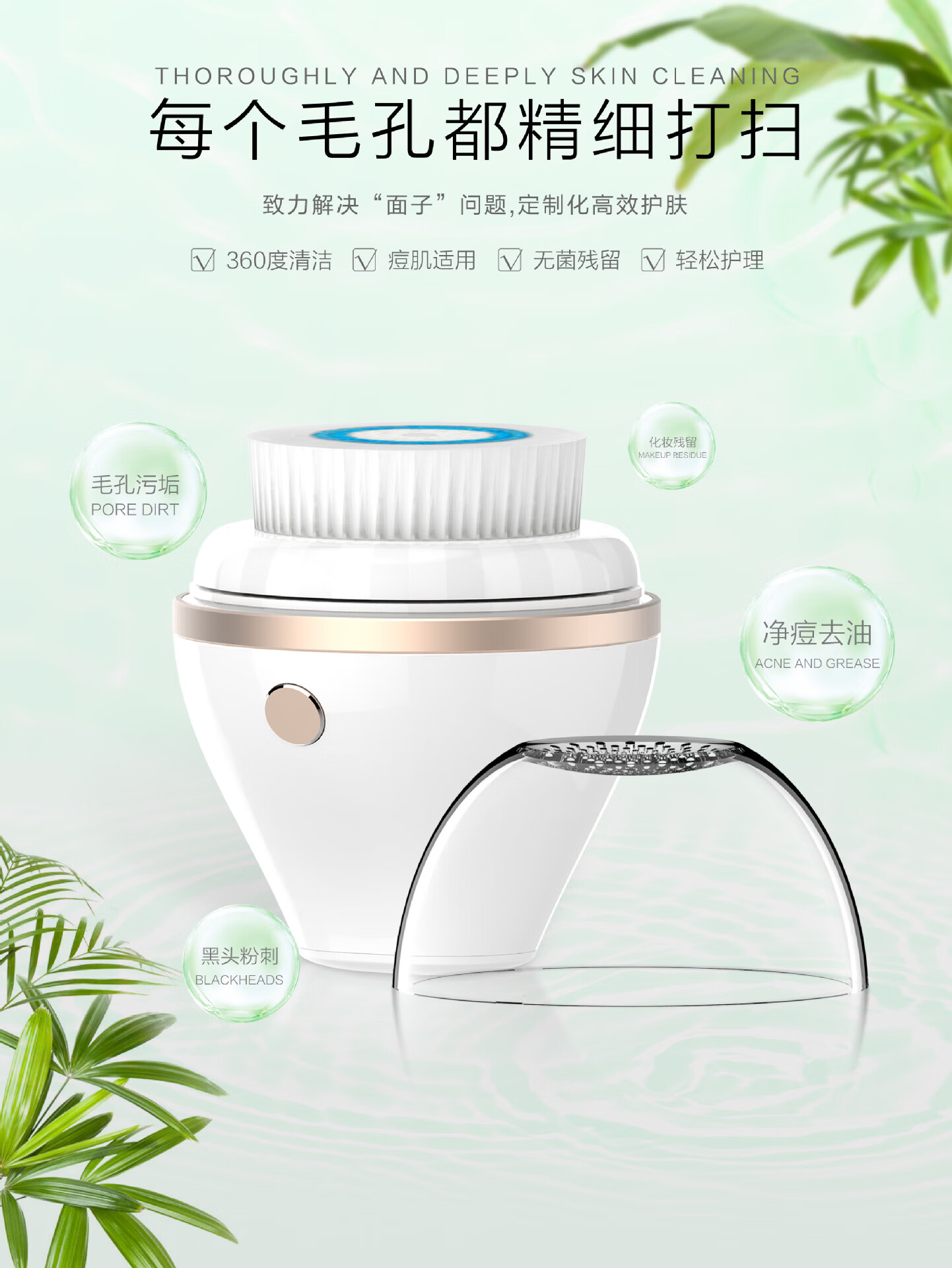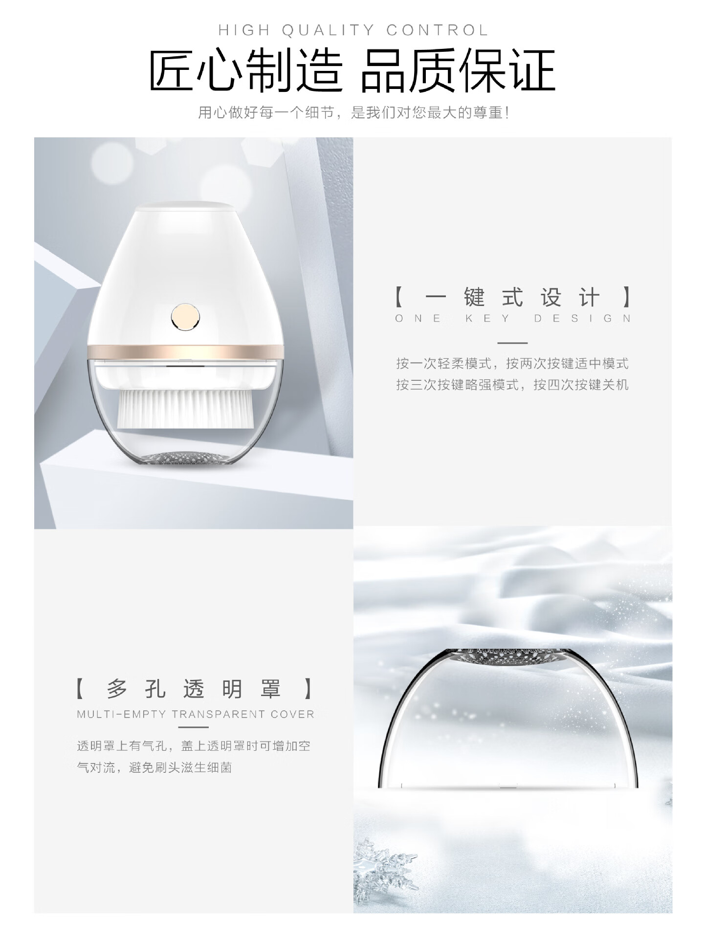 Excellently selected electric facial cleanser, ultrasonic facial cleanser, silicone facial cleansing brush, two types of facial brush heads from the manufacturer, ivory white brush head - vibrating type