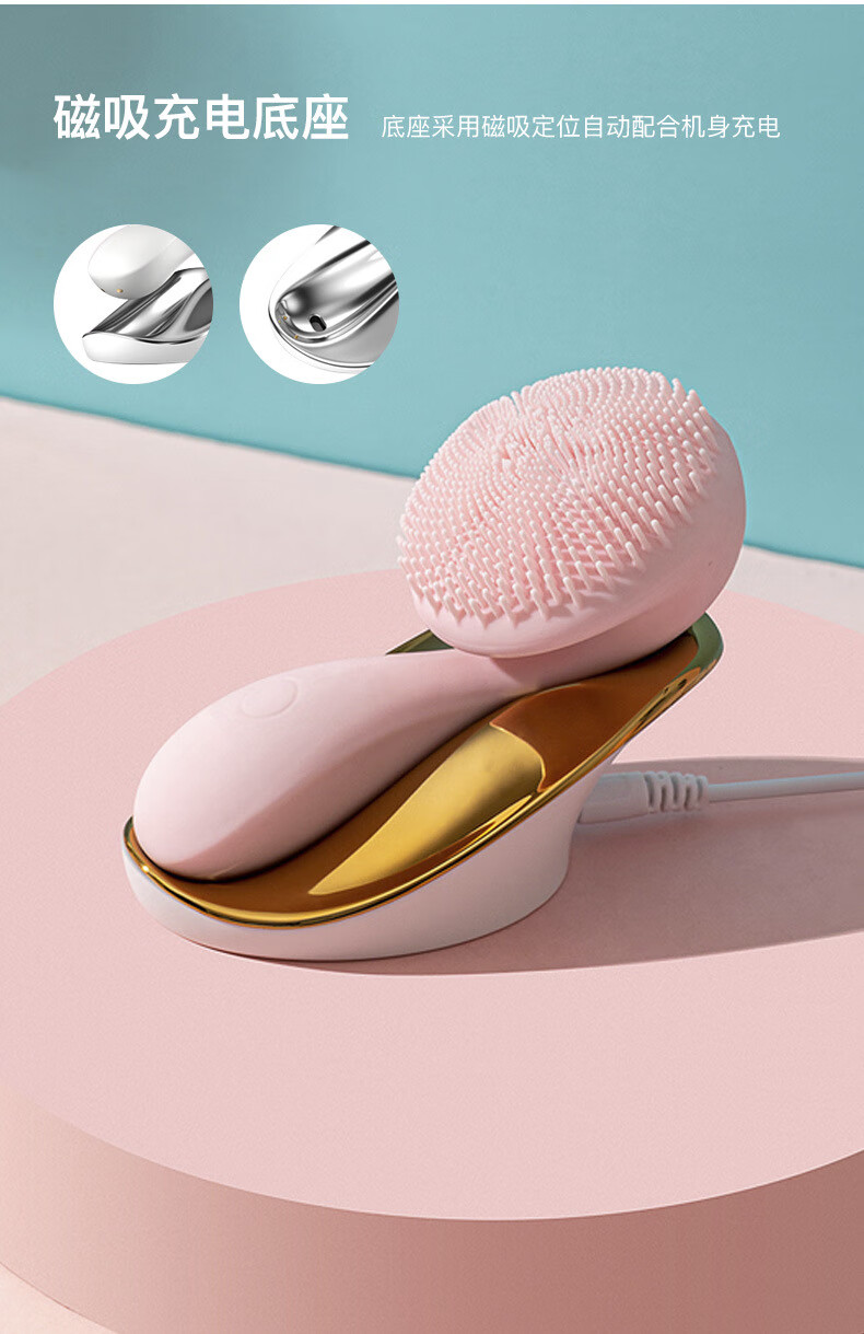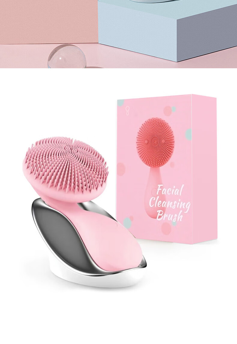 Neues multifunktionales Silikon-Gesichtsreinigungsgerät, wiederaufladbares Mini-Elektro-Gesichtsreinigungsgerät für Damen, Magnetperlen-Massage-Schönheitsgerät mit Logo in Rosa