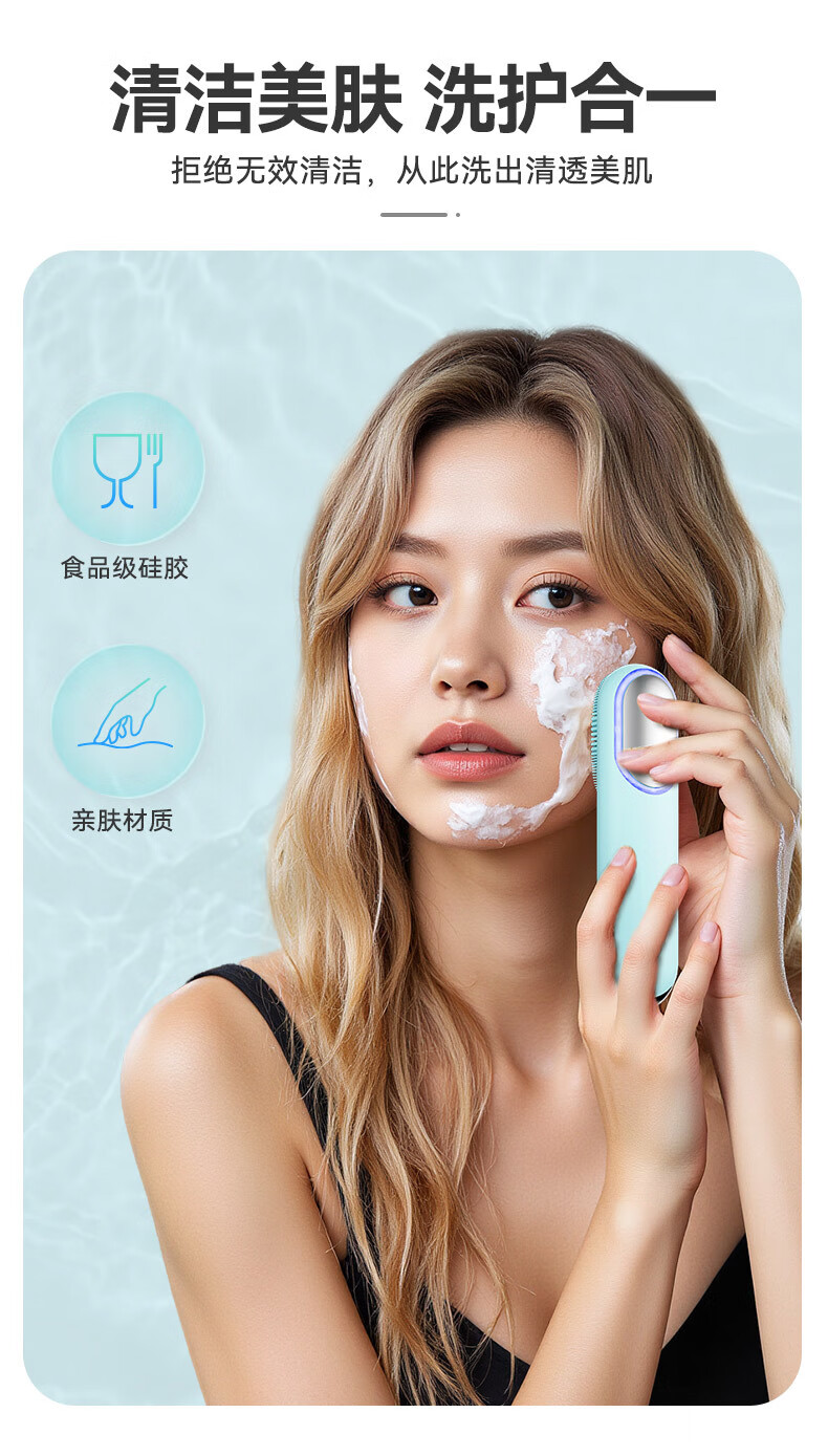 Gesichtswaschinstrument, wasserblockierende Silikon-Gesichtswaschbürste, Ultraschall-Gesichtsmassage, Schönheitsinstrument, heiße und kalte Kompresse, elektrisches Gesichtsreinigungsinstrument, Schwarz
