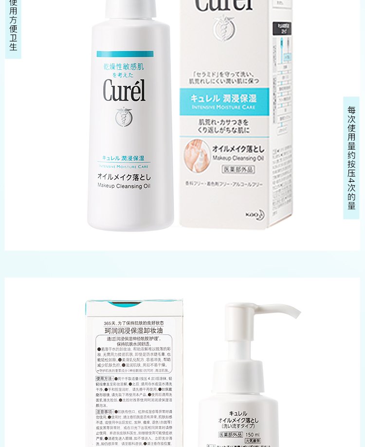 Curel Moisturizing Cleansing Oil 150ml Gentle makeup remover Refreshing and easy to remove Suitable for sensitive skin Suitable for men and women