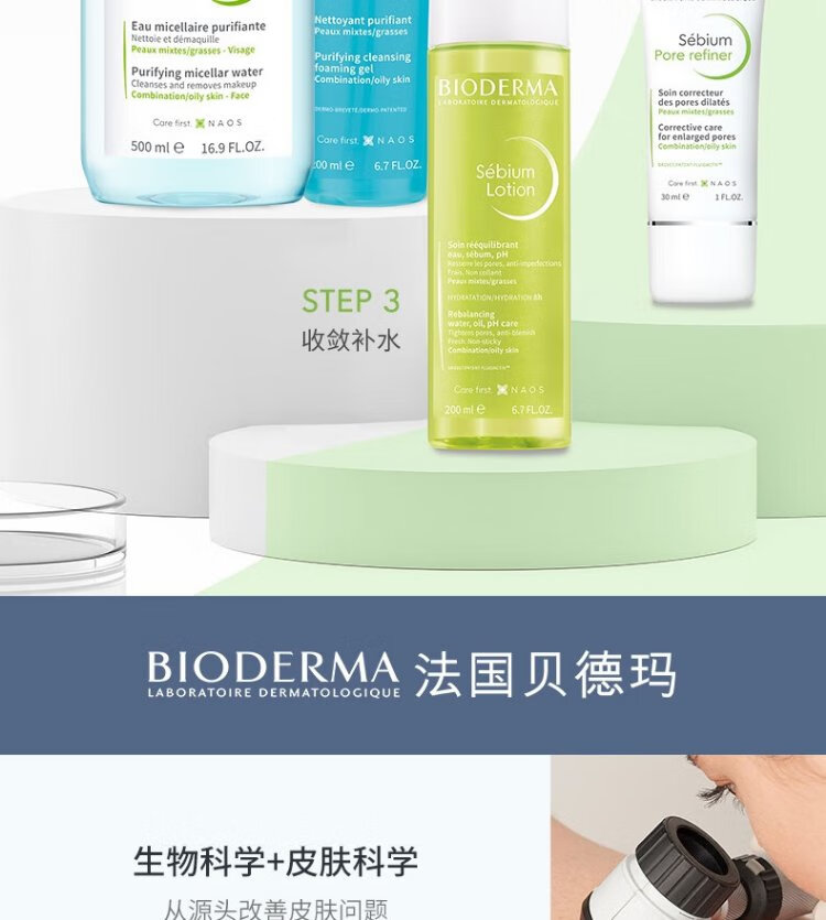 BIODERMA Makeup Remover Green Water 500ml*2 Net Yan Oil Control Cleanser Oil Skin Facial Cleansing Double Eleven Gift for Men
