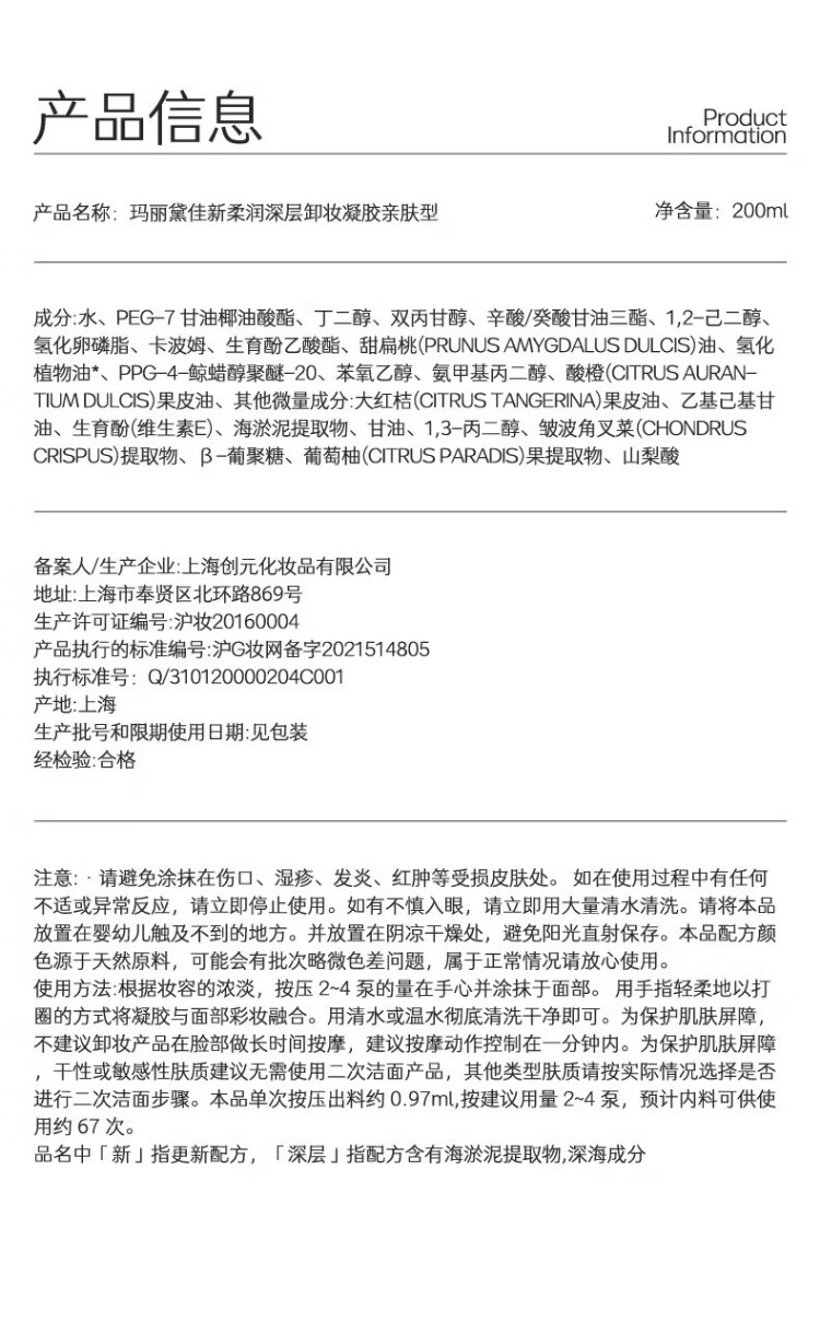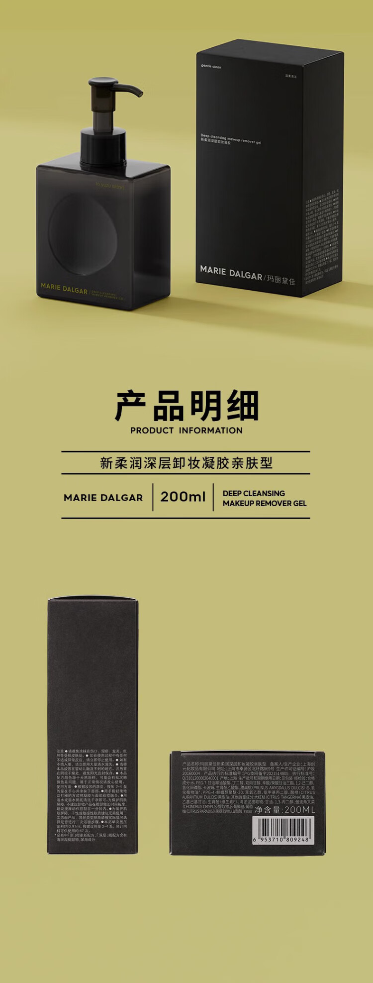 Marie Dalgar Make-up-Entferner-Gel, hautfreundlich, reinigt die Poren und strafft nicht, 200 ml