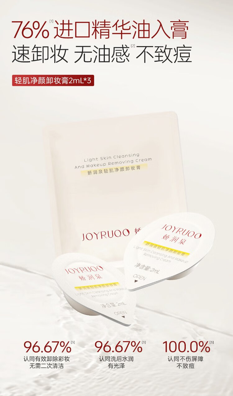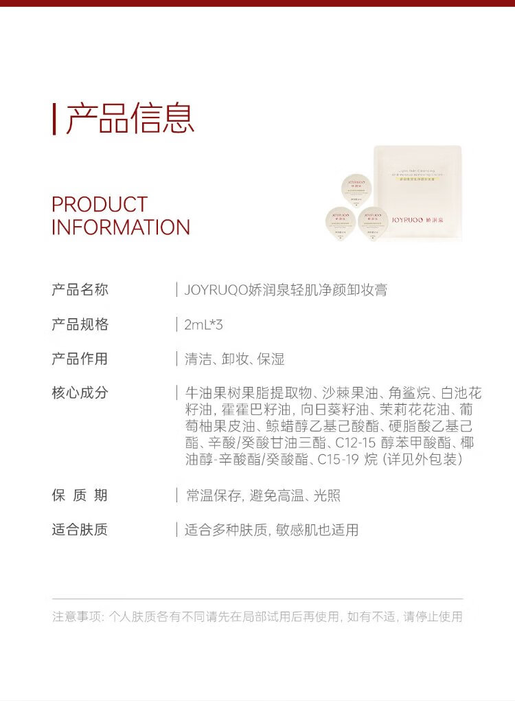 Jiaorunquan light muscle cleansing cleansing balm sample travel size 2ml*3 pieces for gentle and deep cleansing of eyes, lips and face