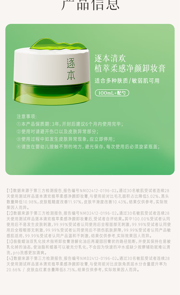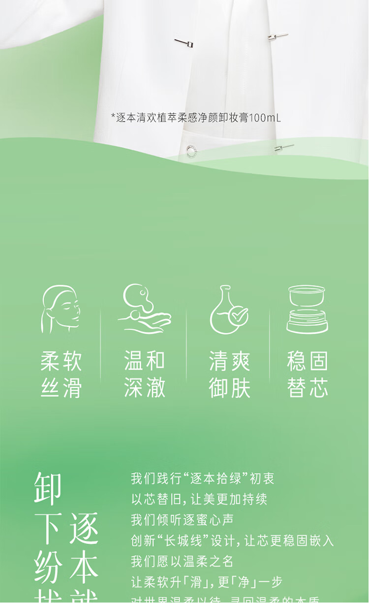 Zhuben Qinghuan Plant Extract Soft Cleansing Makeup Remover Cream Full Size*1+Replacement Size*2 Expert Exclusive Same Style as Tan Jianci