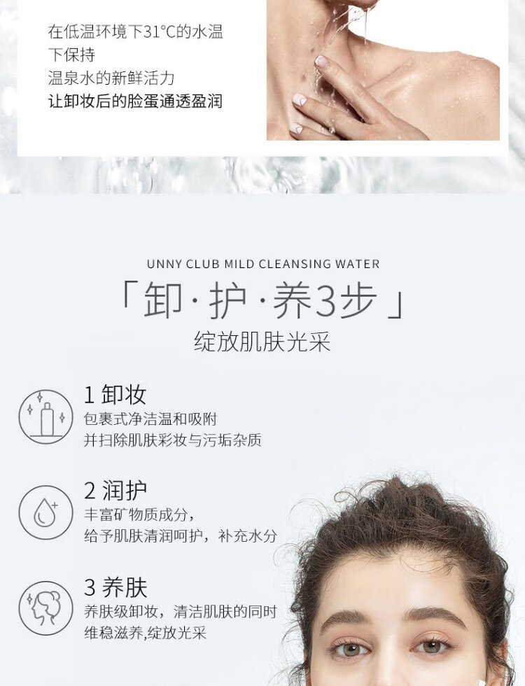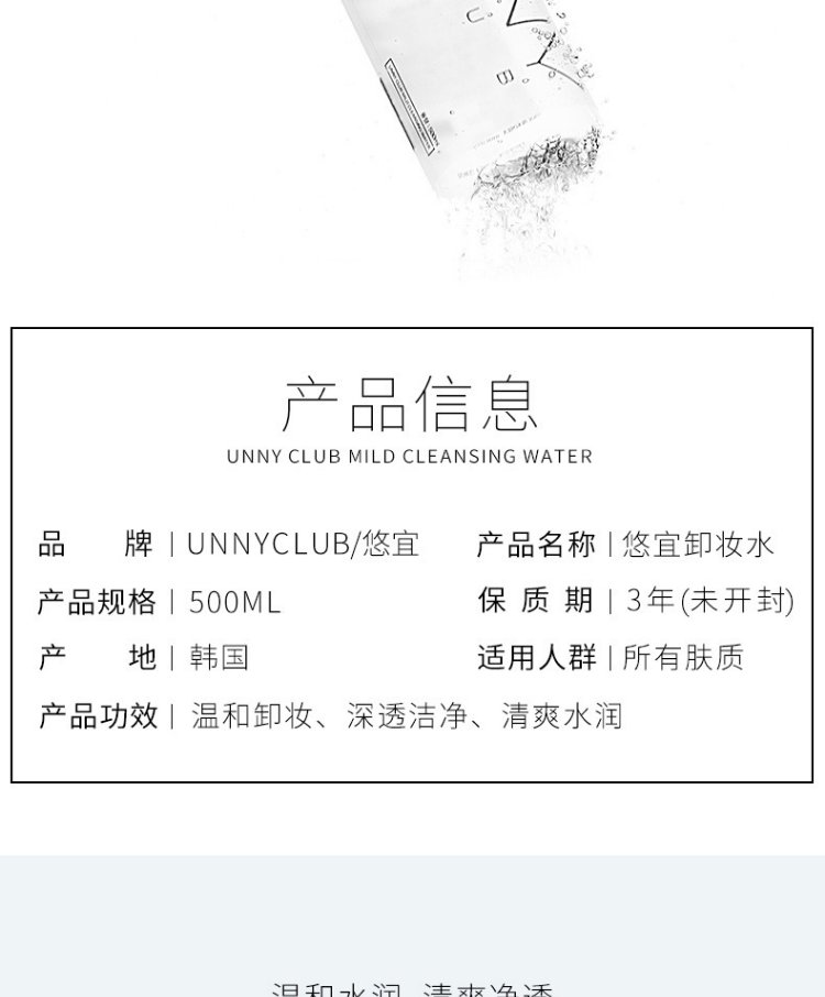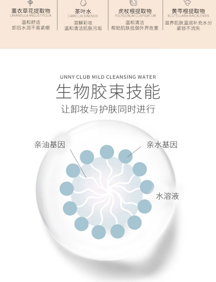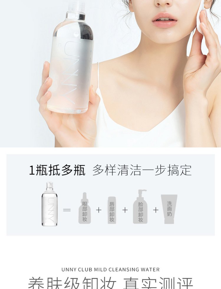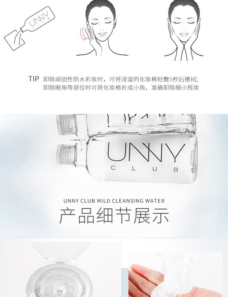 Unny club makeup remover 500ml deep and gentle cleansing fine pores eye and lip makeup remover for men and women with sensitive skin