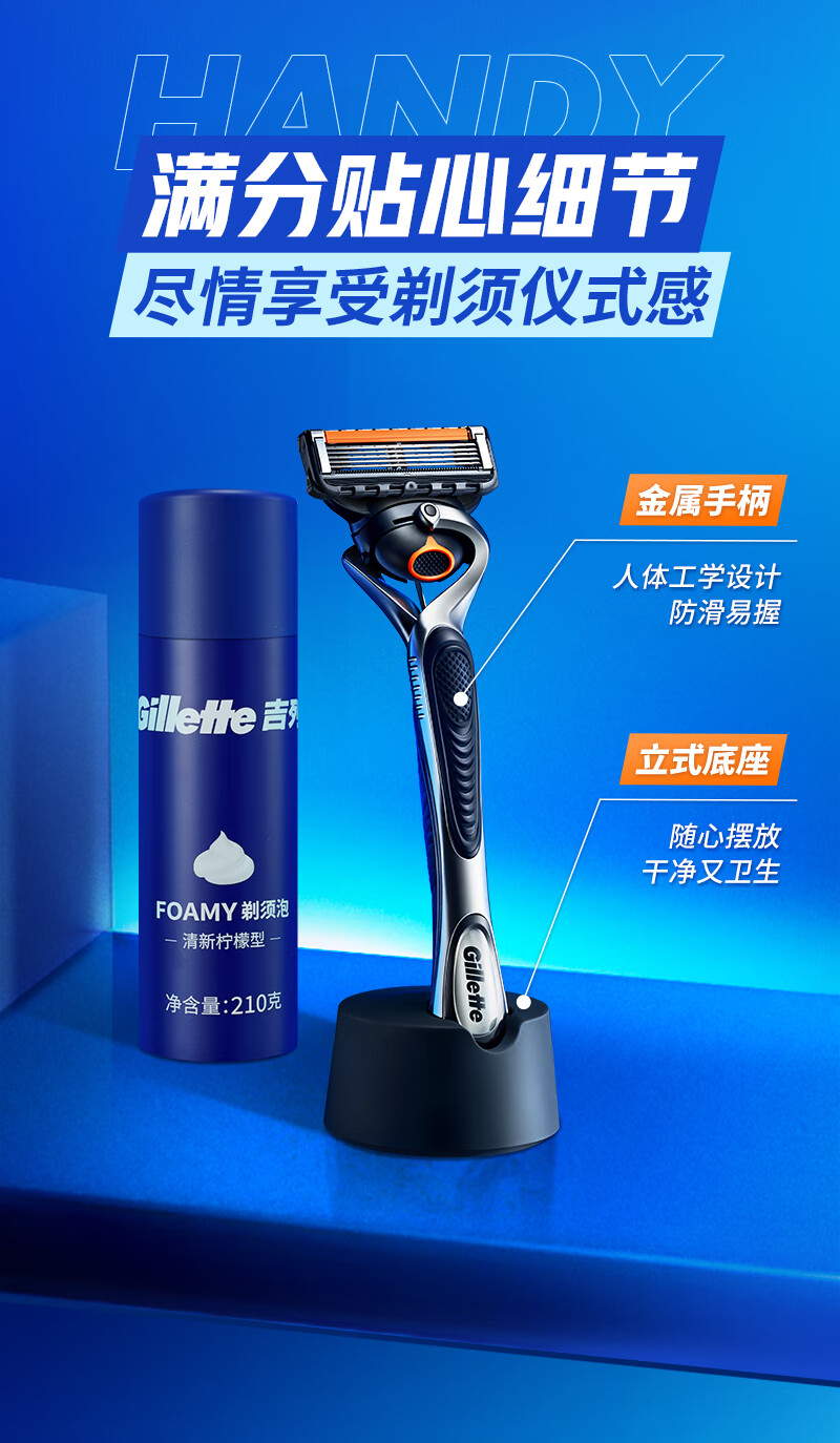 Gillette manual razor, sharp and smooth, manual razor, anti-scratch for beginners, 5-layer blade, 1 blade holder, 1 blade head, non-geely