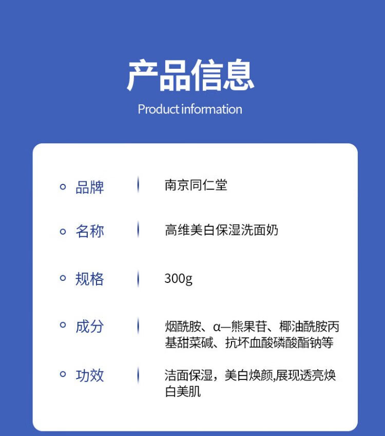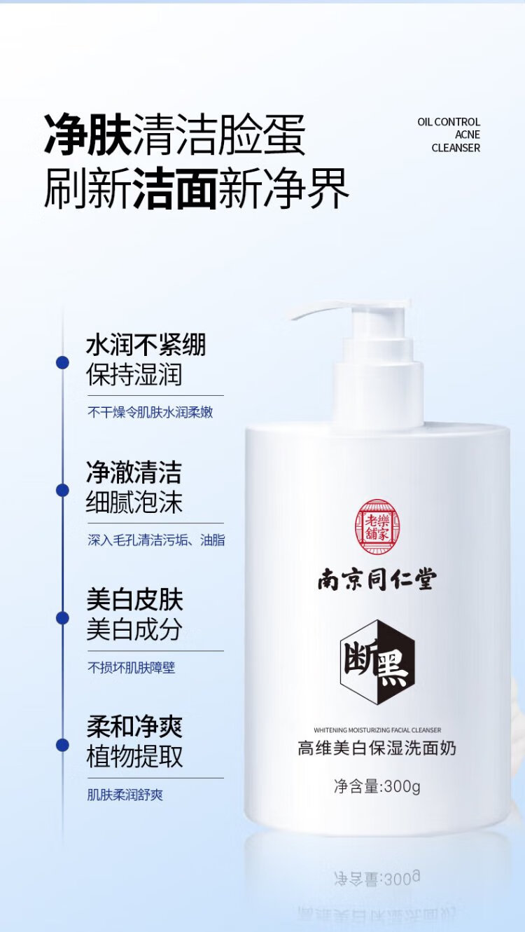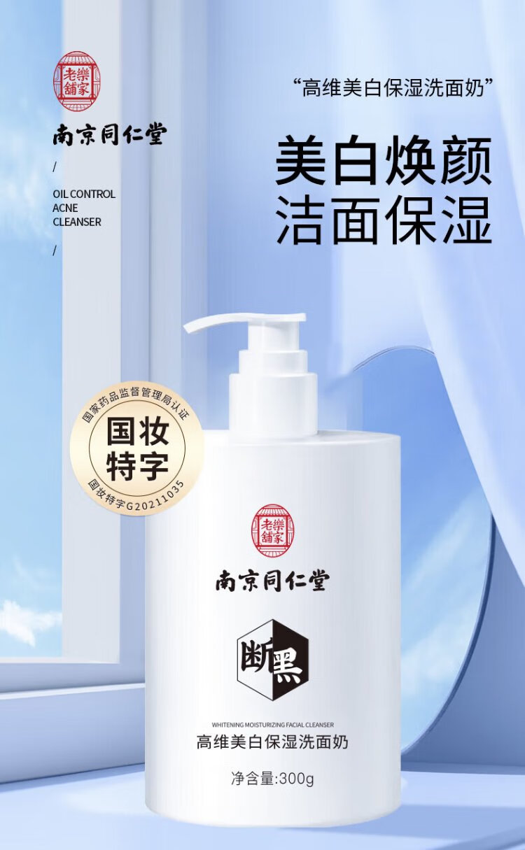 Tongrentang whitening and freckle removal facial cleanser to brighten skin tone, oil control, clean pores, hydrate and moisturize, unisex facial cleanser 300g