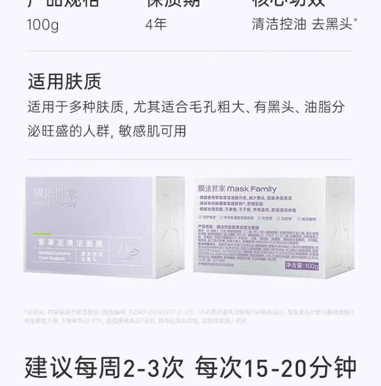 Membrane Family Lithospermum Cleansing Mud Mask 100g Oil Control Cleans Pores and Removes Blackheads Apply Mask to Improve Redness and Sensitive Skin Suitable for