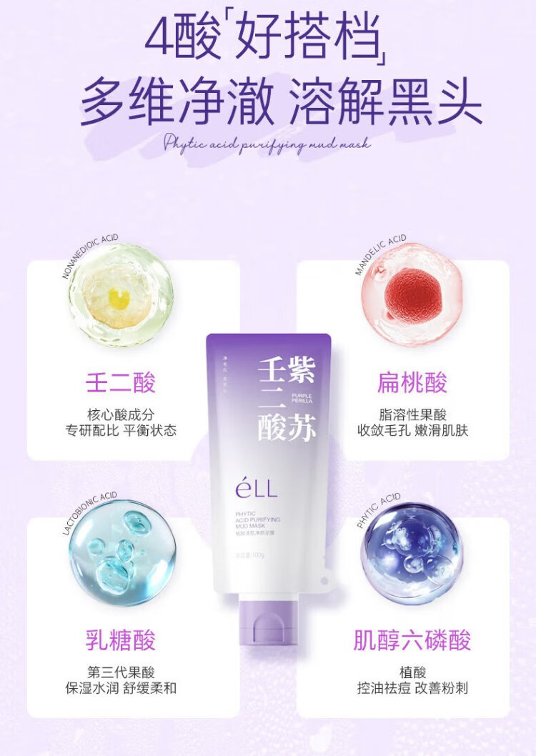 ELL Perilla Azelaic Acid Cleansing Mud Mask 100g shrinks pores, removes blackheads and closes acne, on clearance
