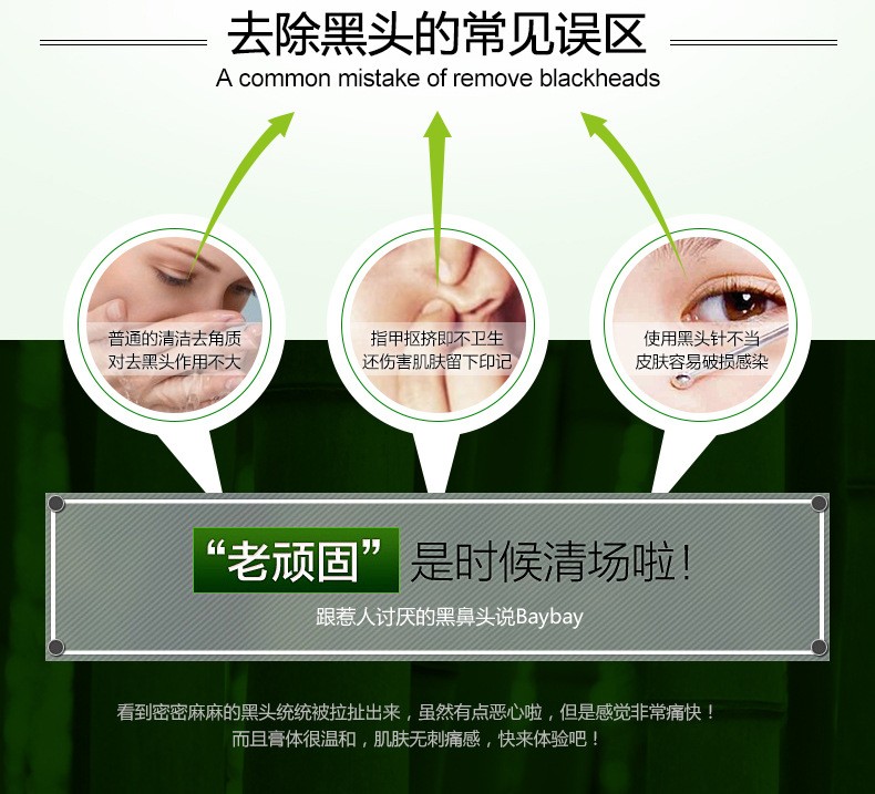 Poquanya brand's same style blackhead and acne absorbing student's nose patch blackhead bamboo charcoal nasal mask cream T-zone care tear-off type nose patch