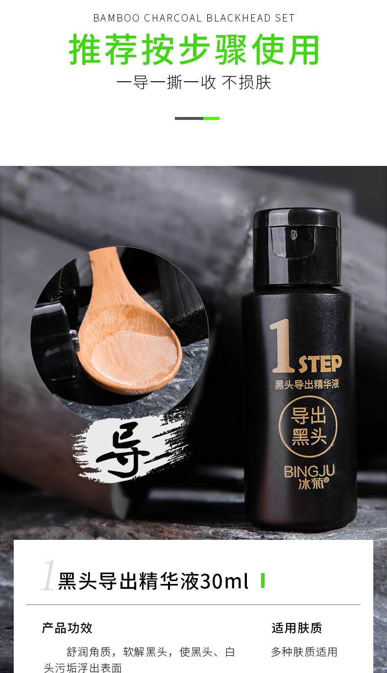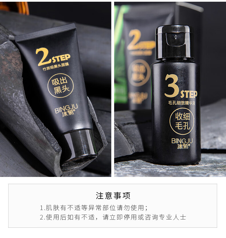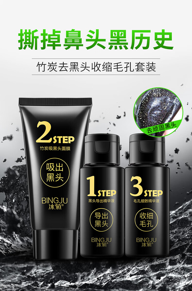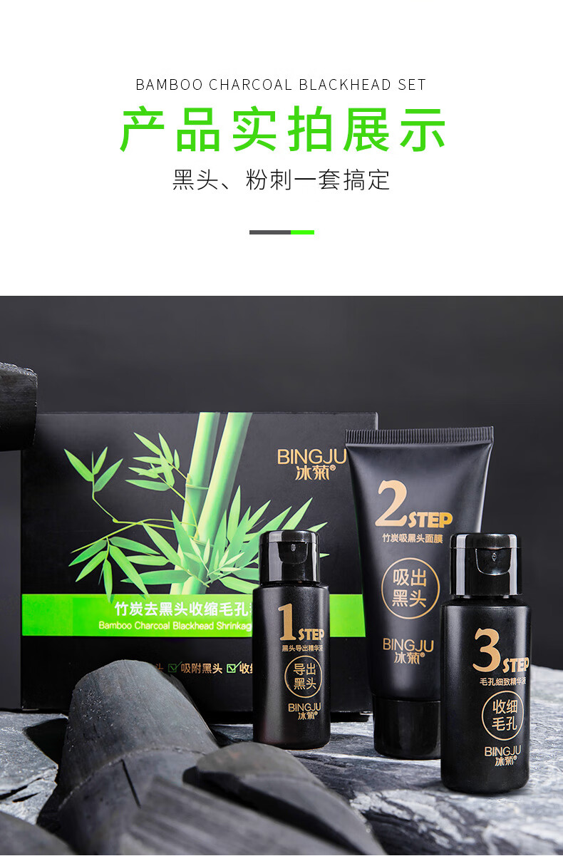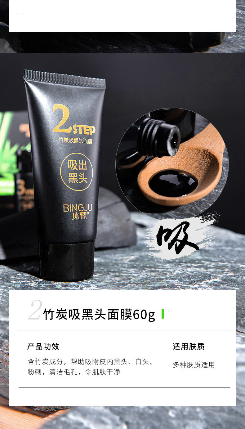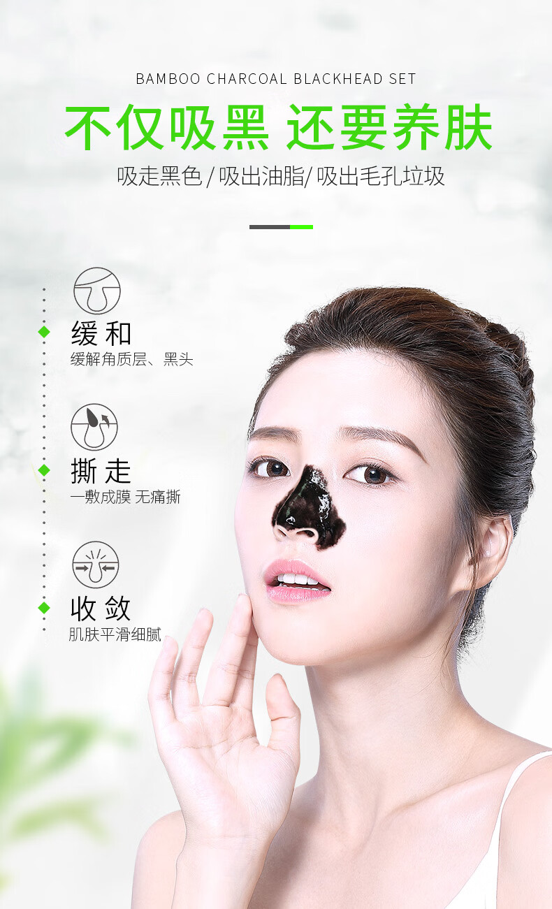 Ice chrysanthemum bamboo charcoal blackhead removal three-piece peel-off mask to shrink enlarged pores, closed mouth powder, pungent nose patch, T-zone care for men and women, 2 sets, affordable pack