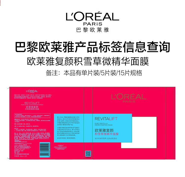 L'Oreal Centella Asiatica Micro Essence Mask 15 pieces moisturizing and anti-wrinkle skin care product birthday gift