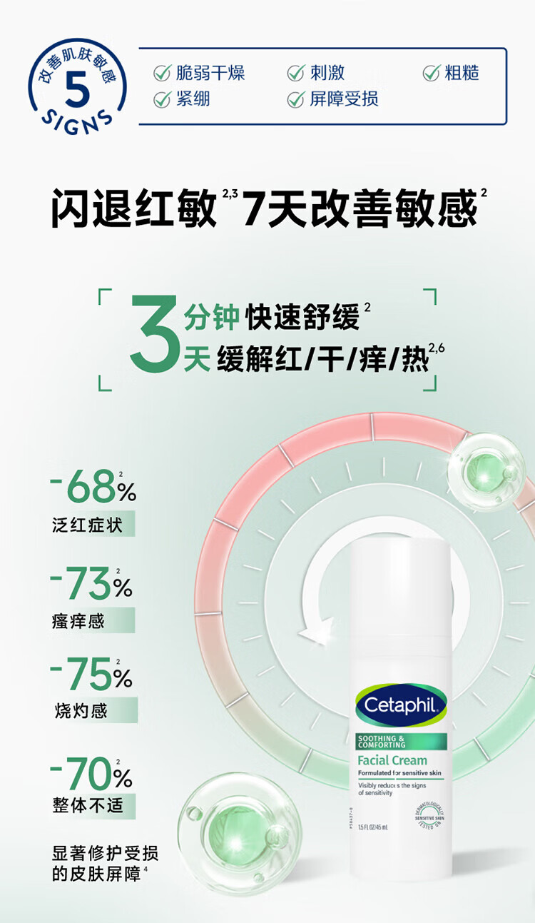 Cetaphil soothing and repairing four-dimensional facial cream 45ml Chen Dulin same style high moisturizing ceramide centella asiatica B5 sensitive skin