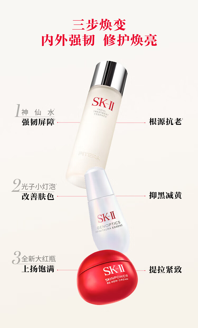 SK-II fairy water 230ml + facial cream 50g + photon small light bulb 30ml skin care product set sk2 cosmetics skii