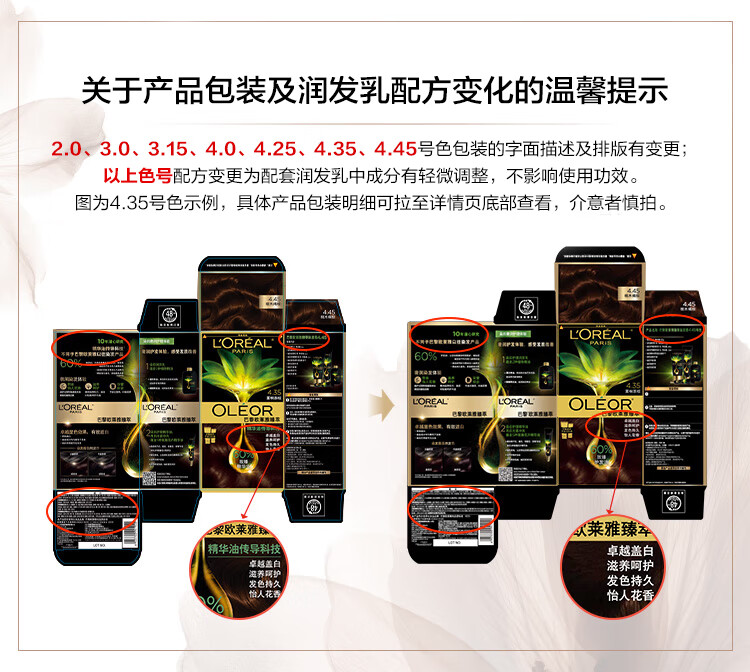 欧莱雅臻萃精油染染发剂 男女遮盖白发 自己在家染发膏4.45桃木褐棕