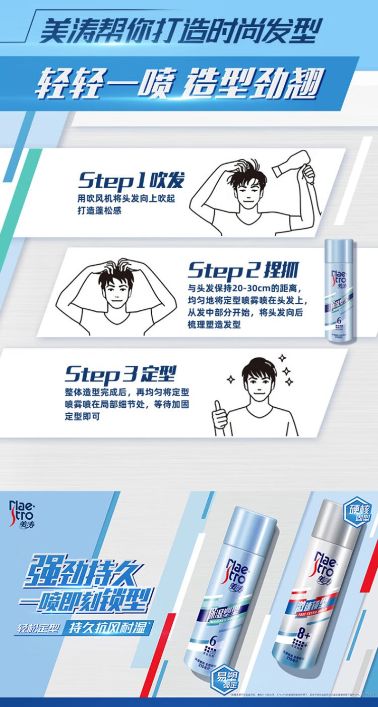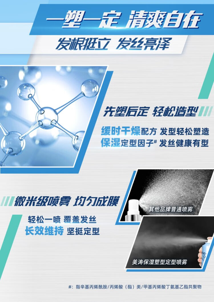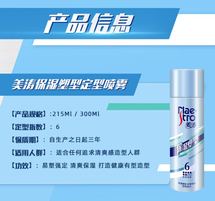 美涛发胶定型男士发胶喷雾强力保湿塑型造型喷雾215ml男士定型喷雾
