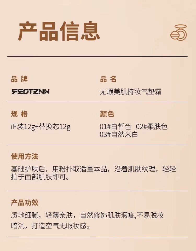 Feotznw silk soft, long-lasting, moisturizing and flawless air cushion, long-lasting concealer, oil control, non-removing makeup, air cushion liquid foundation gift 02# brightening skin tone