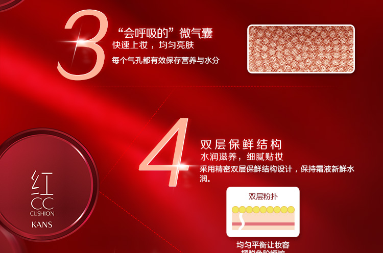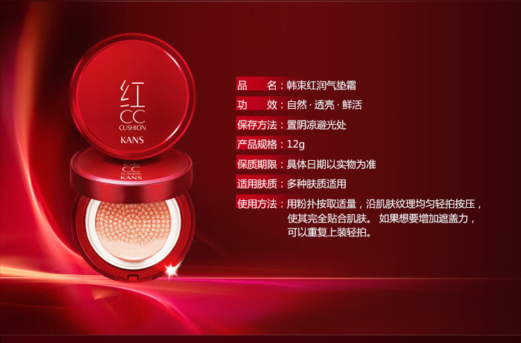 Korean air cushion CC cream rosy air cushion CC cream, natural makeup, hydrating, moisturizing, firming and anti-wrinkle, refreshing and oil-suppressing foundation, soft light and translucent air cushion cc cream (01 cold porcelain white + free replacement core)