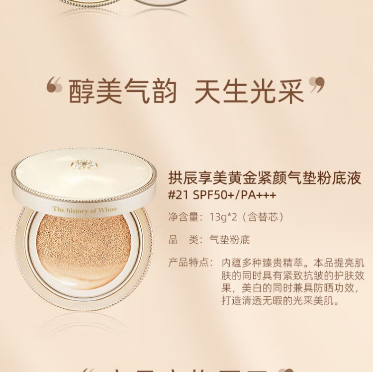 Whoo Gold Cushion Foundation #21 SPF50+/PA+++ Sun Protection Concealer Long-lasting Makeup Ready in stock