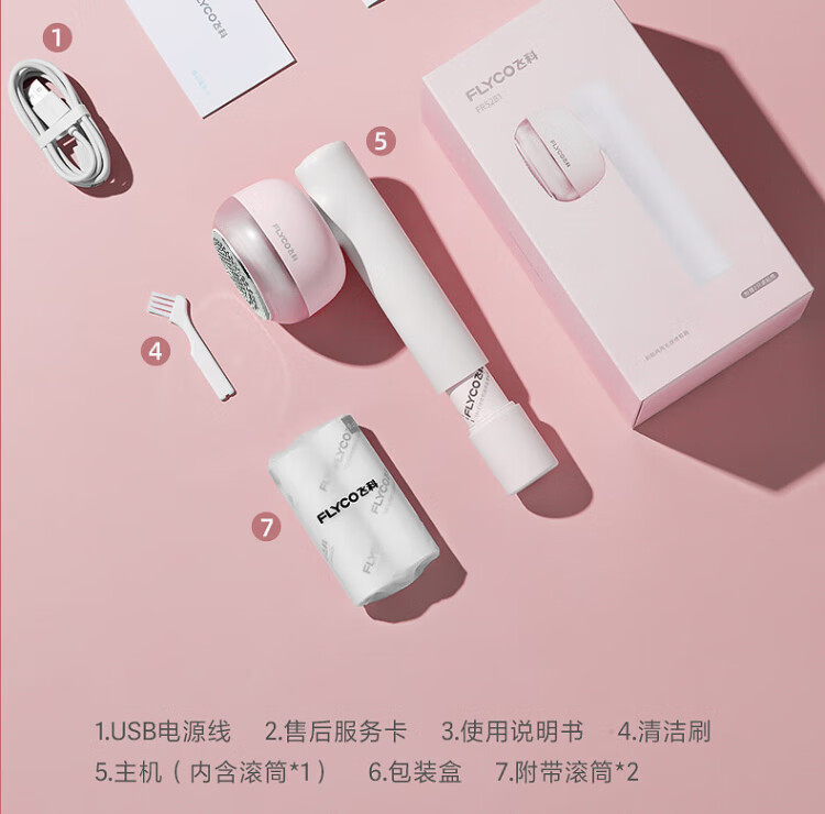 FLYCO Hair Ball Trimmer, Hair Ball Remover, Fall and Winter Sticky Hair Shaving Device, Clothes Ball Remover, Rechargeable Household FR5281, Sticky and Shaving Dual-Purpose, Total 3 Sticking Rollers