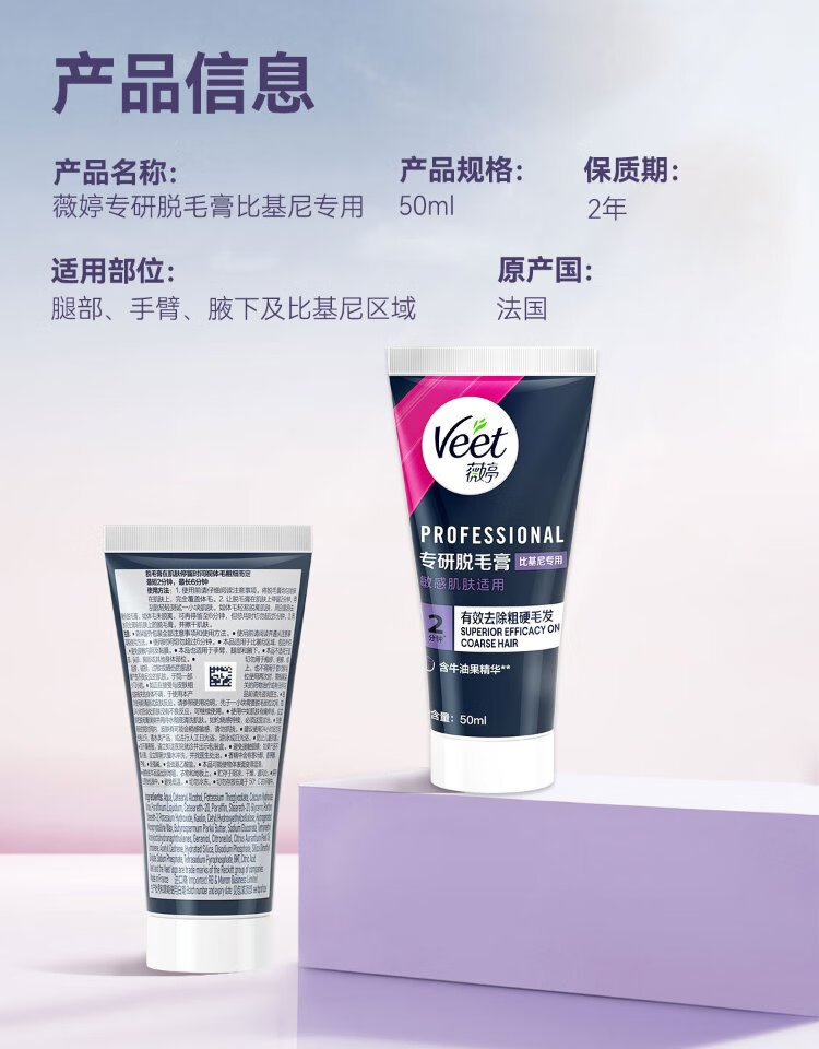 VEET (VEET) Song Qian's same style Bikini Hair Removal Cream 50ml, men and women's private hair removal tool, not the body's armpits