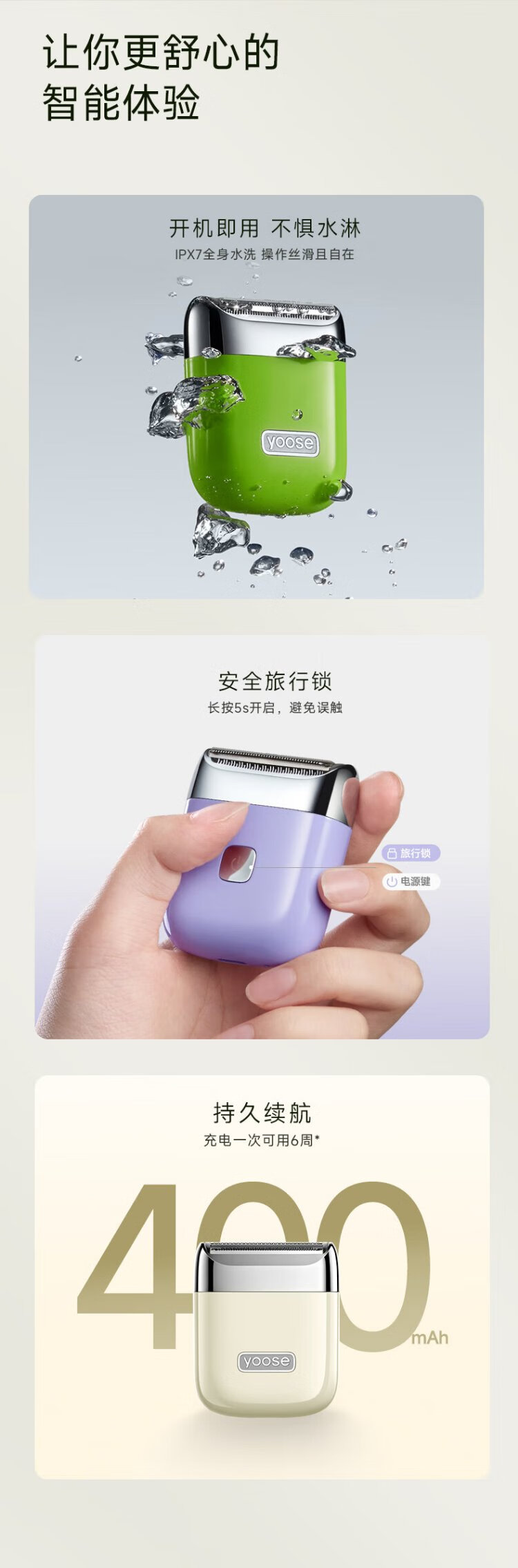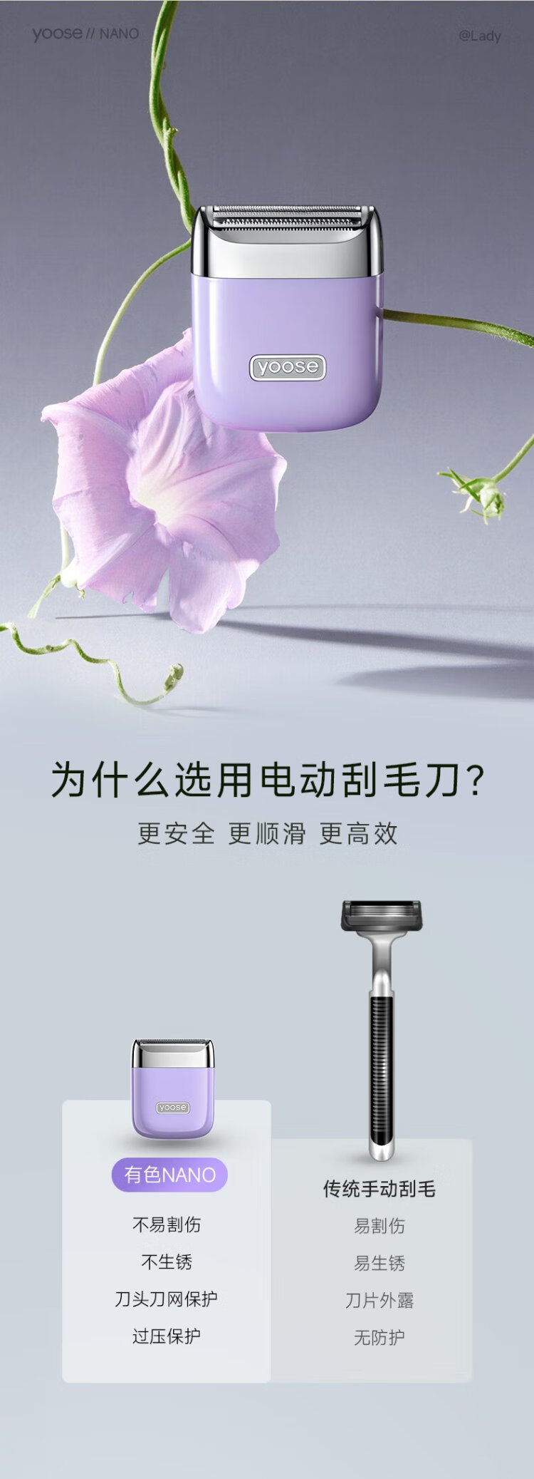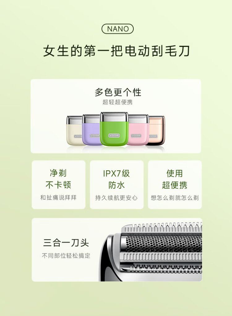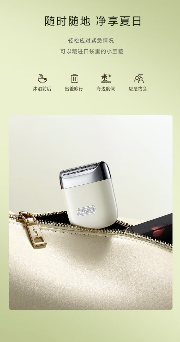 Colored (yoose) electric shaver special armpit hair removal artifact to remove leg hair and underarm shaver for boys and girls to trim private parts NANO Porcelain White