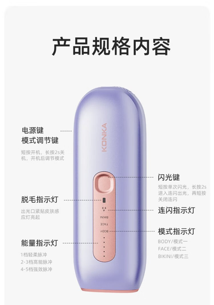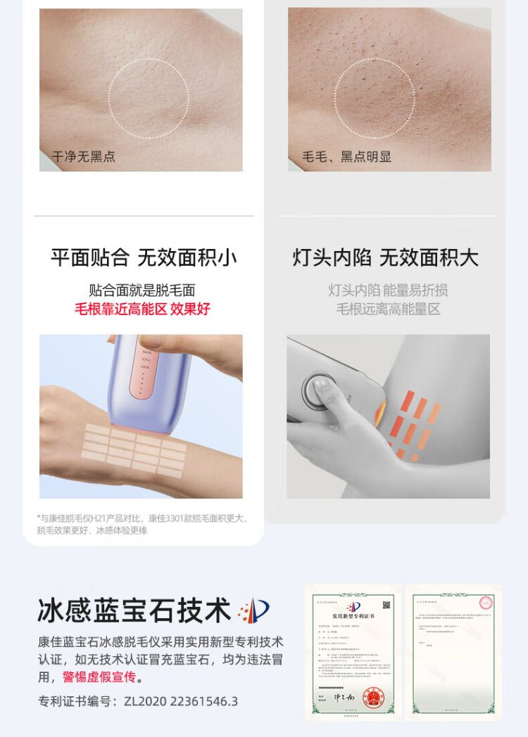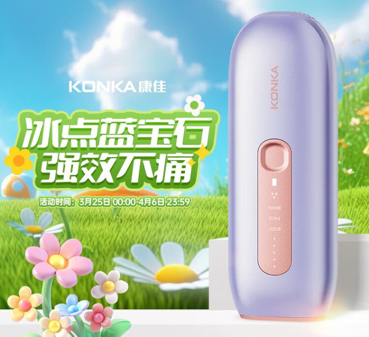 KONKA Hair Removal Device 3301 Sapphire Ice Feel Freezing Point Household Dormitory Hair Removal Machine for Lips, Armpits and Legs, Bikini Line, Practical Gift for Girlfriend’s Birthday, Guaranteed Price, Cream White - Quartz Crystal Freezing Point Version