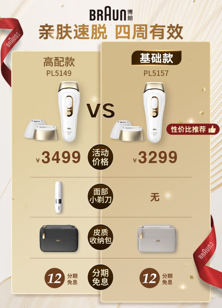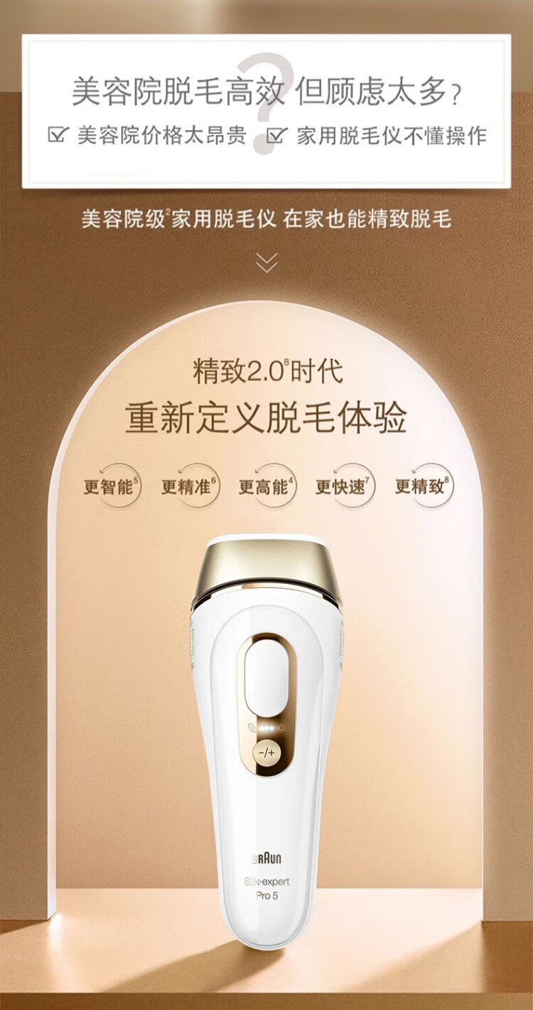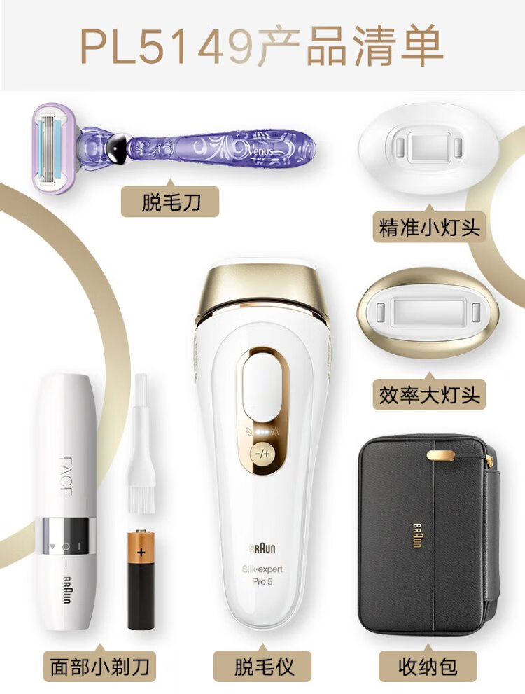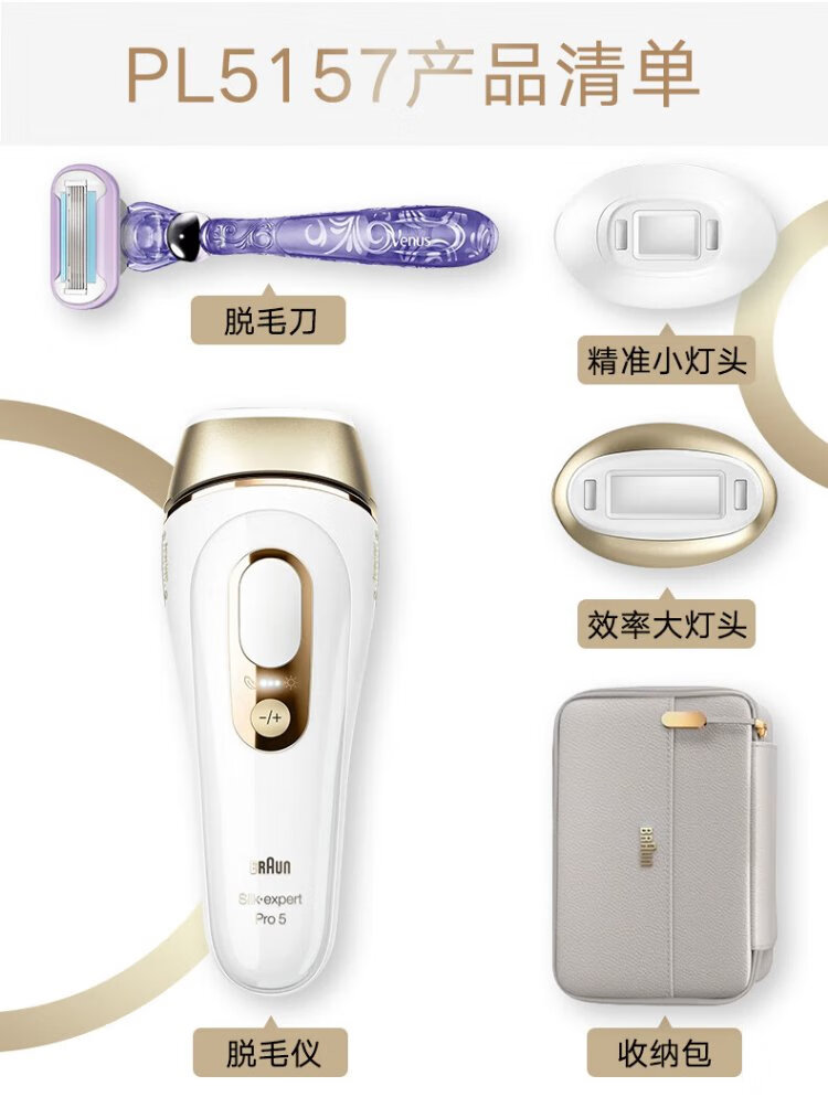 Braun (BRAUN) hair removal device Pro5 shaver original imported pulse light household hair remover whole body underarm lip hair armpit hair leg hair private parts men's shaver beauty salon PL5157