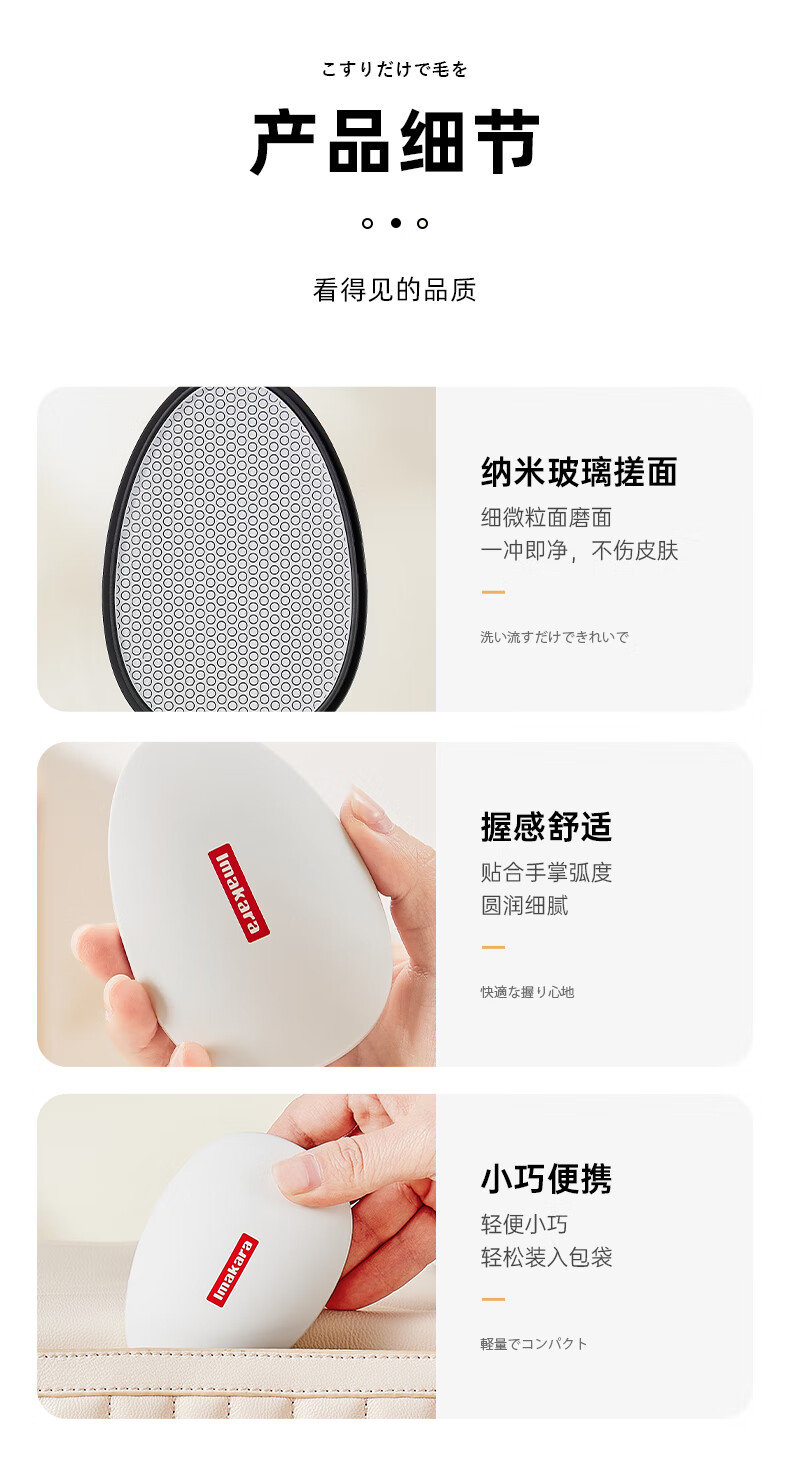 Imakara Japanese brand nano glass hair removal artifact exfoliating shaver household hair removal instrument for men and women white model nano micro-abrasive particles/mild hair removal