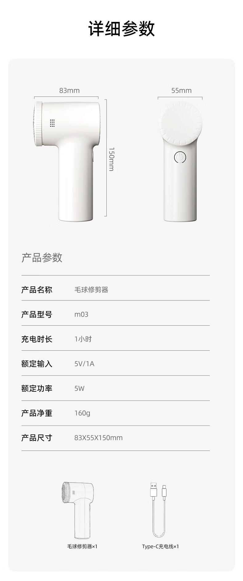 Xiaomi Pingti Hair Ball Trimmer, Home Ball Remover, Hair Ball Remover, Hair Remover, Clothes Hair Remover, Sweater Hair Ball Trimmer, Artifact Shaving Machine, White Rechargeable Model, Original Blade