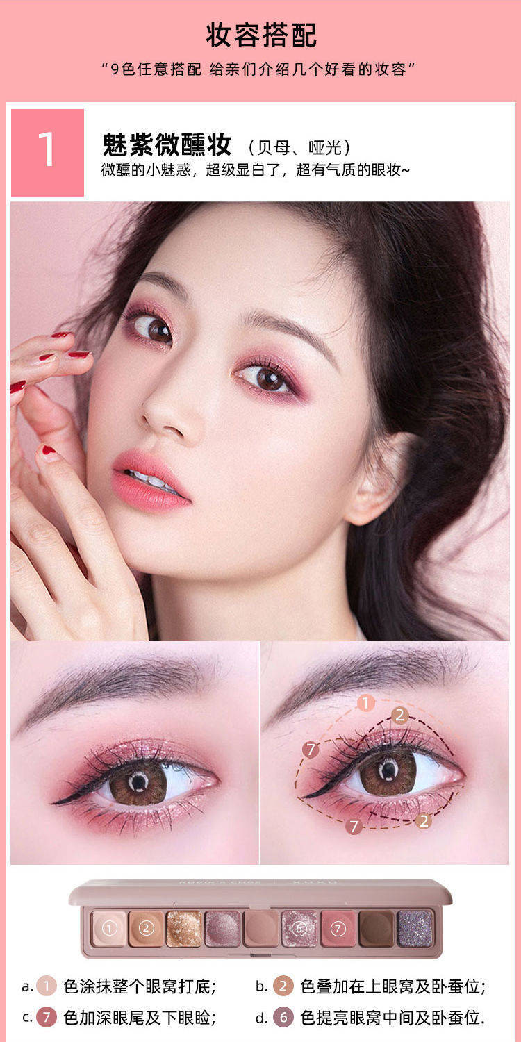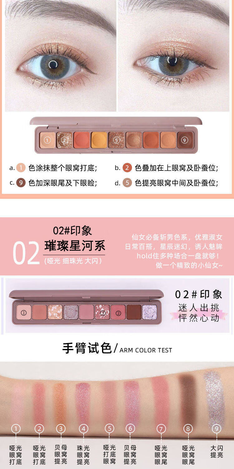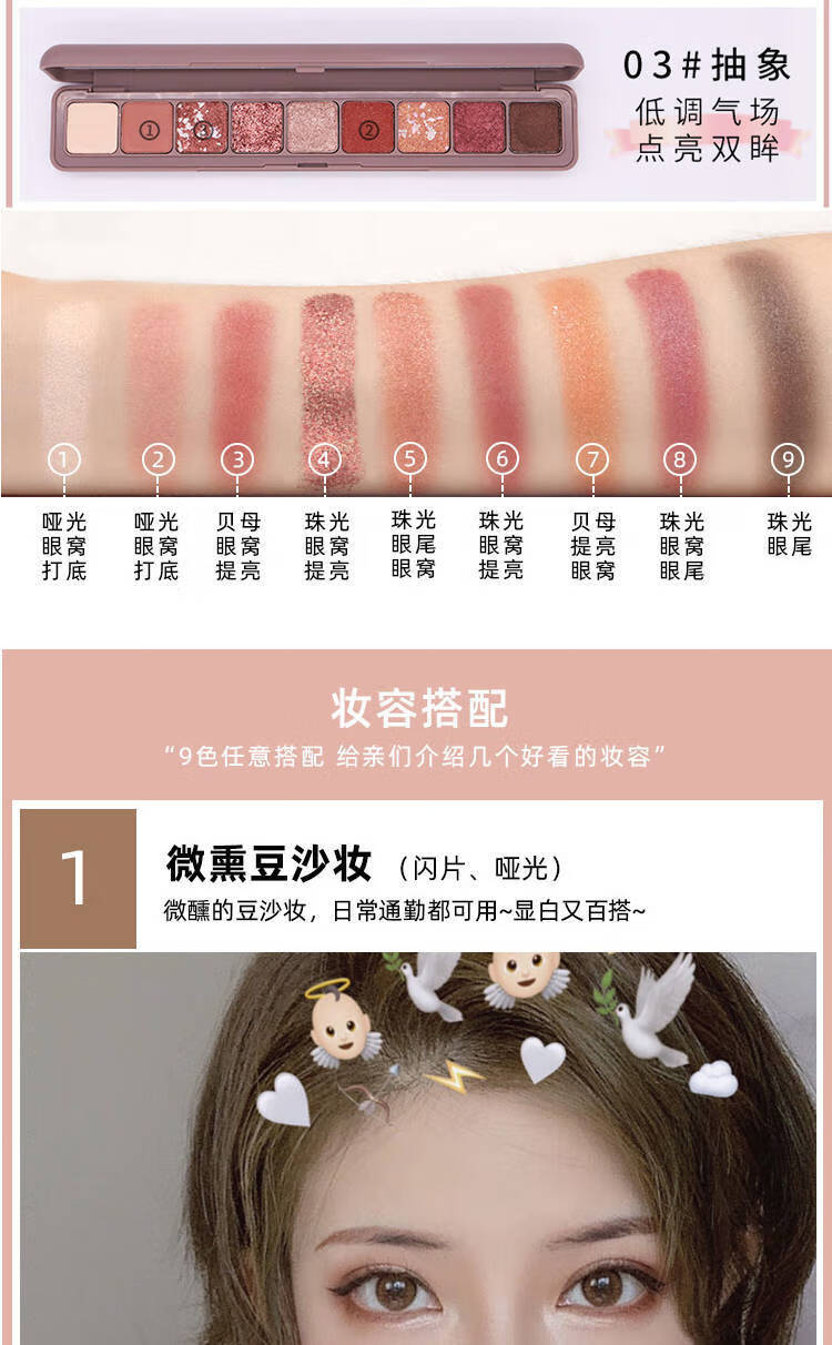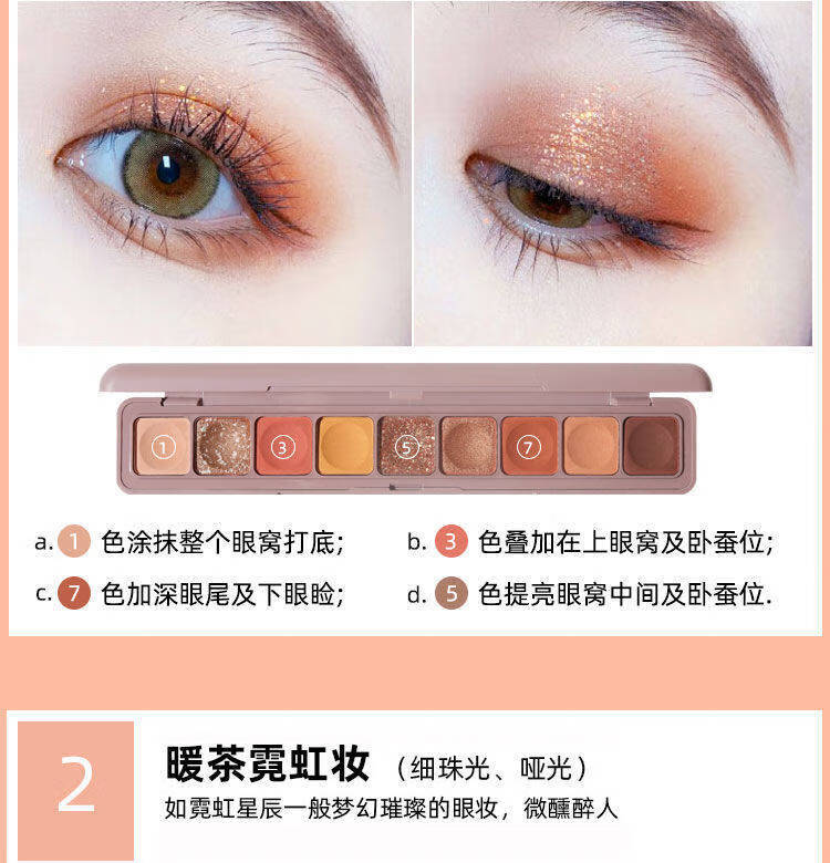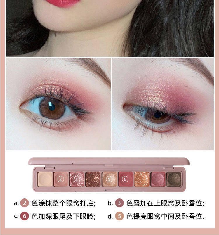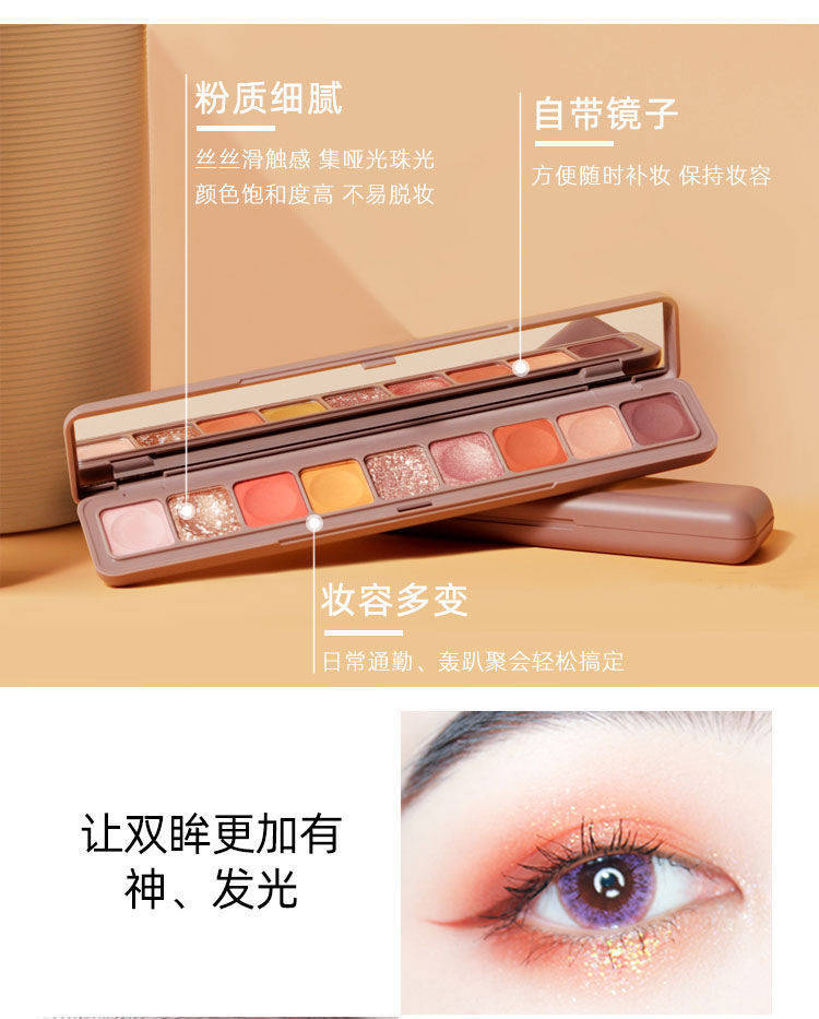 Huaji ins super hot nine-color eye shadow small plate lazy portable glitter pearlescent affordable student earth-color beauty tool 1009-1 fingertip eye shadow 1 piece