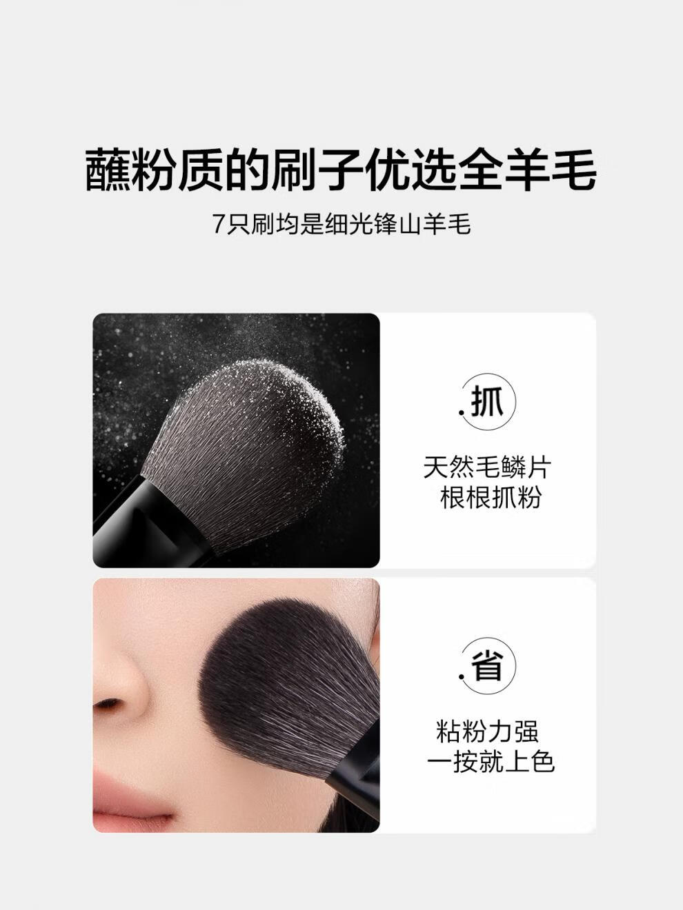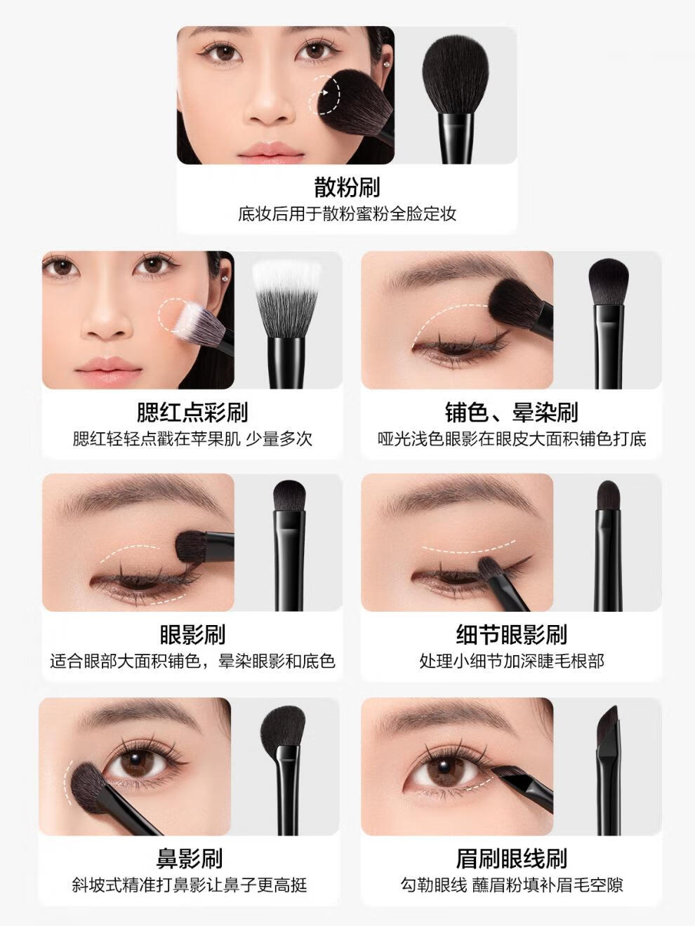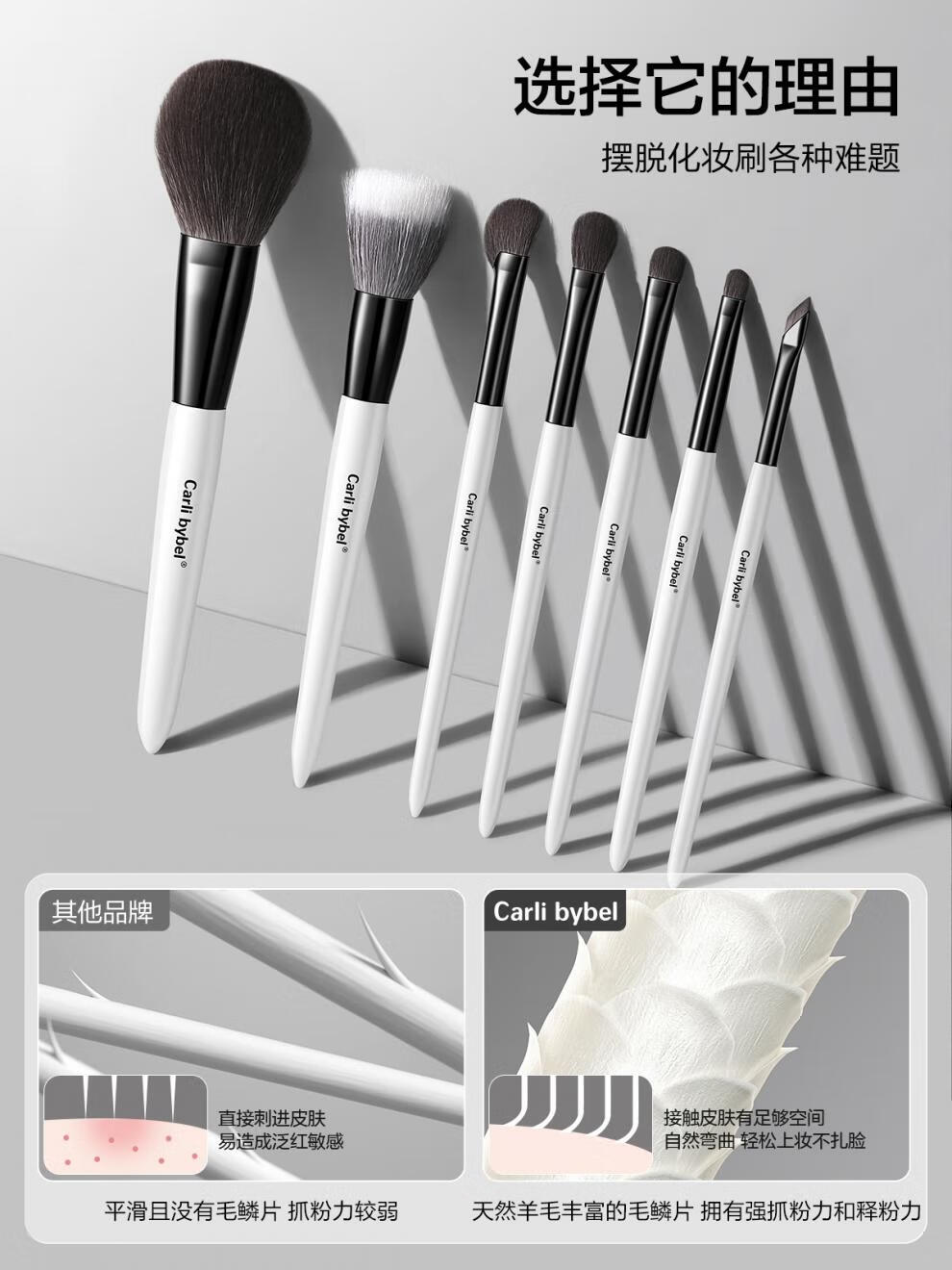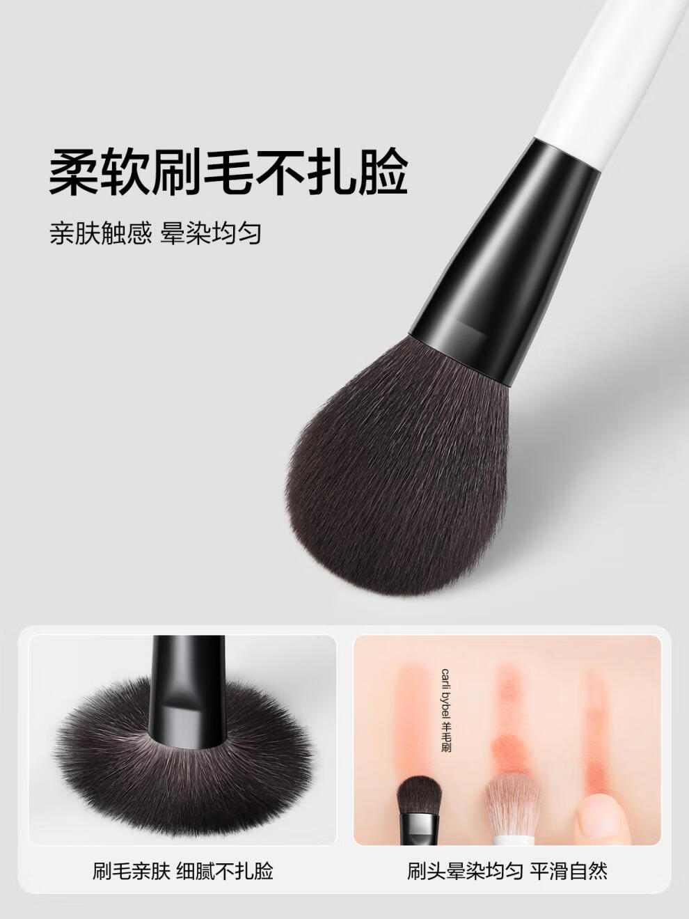 CARLI BYBEL pure wool makeup brush set for makeup artists, animal hair blusher stippling brush, eyeshadow brush, detail brush, eyeliner brush, black and white brush set - 5 pieces wool
