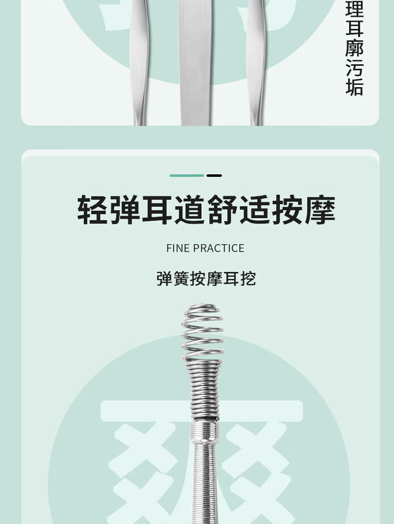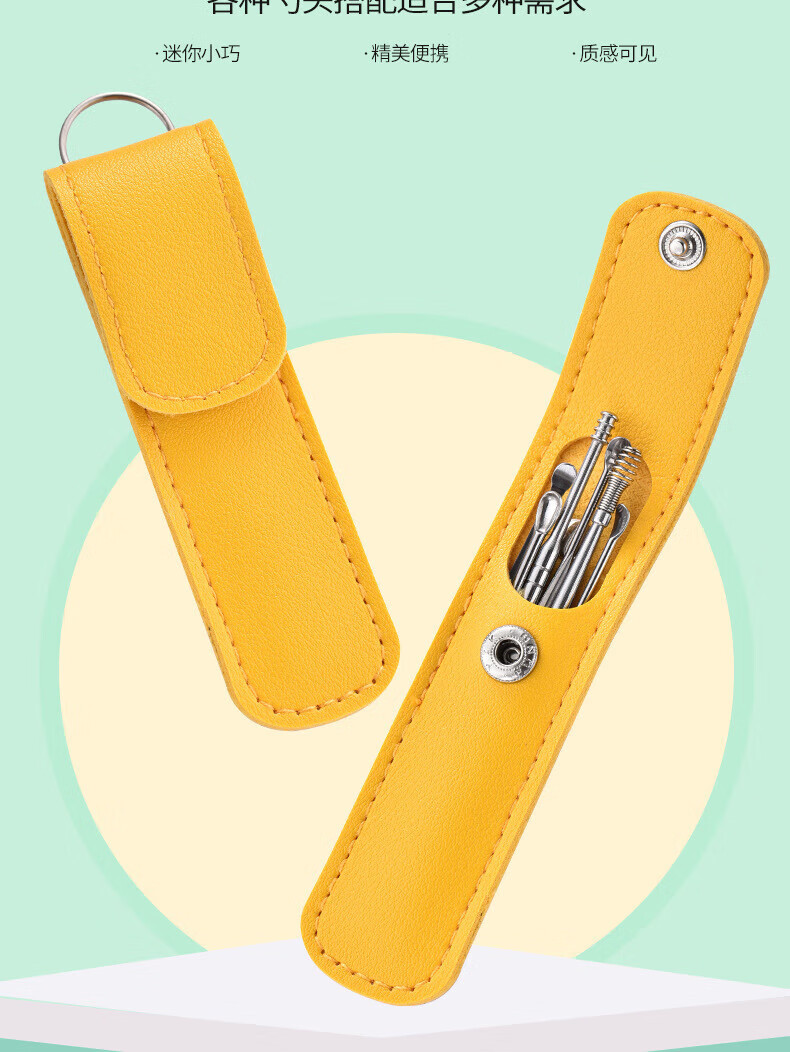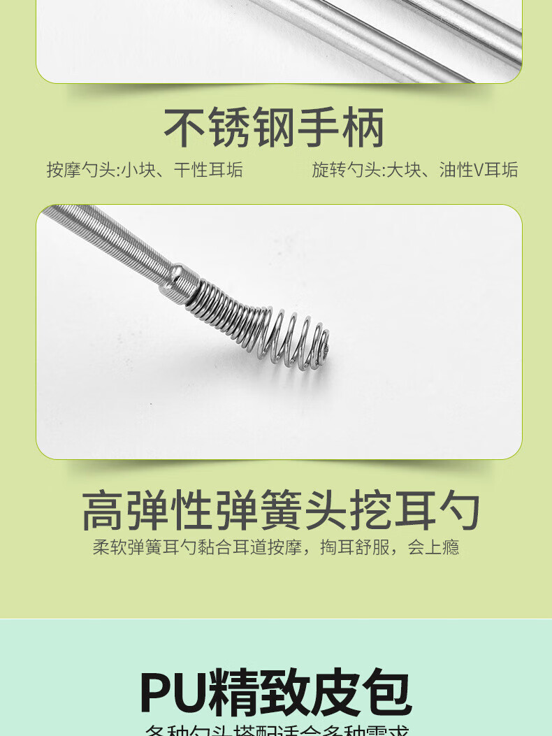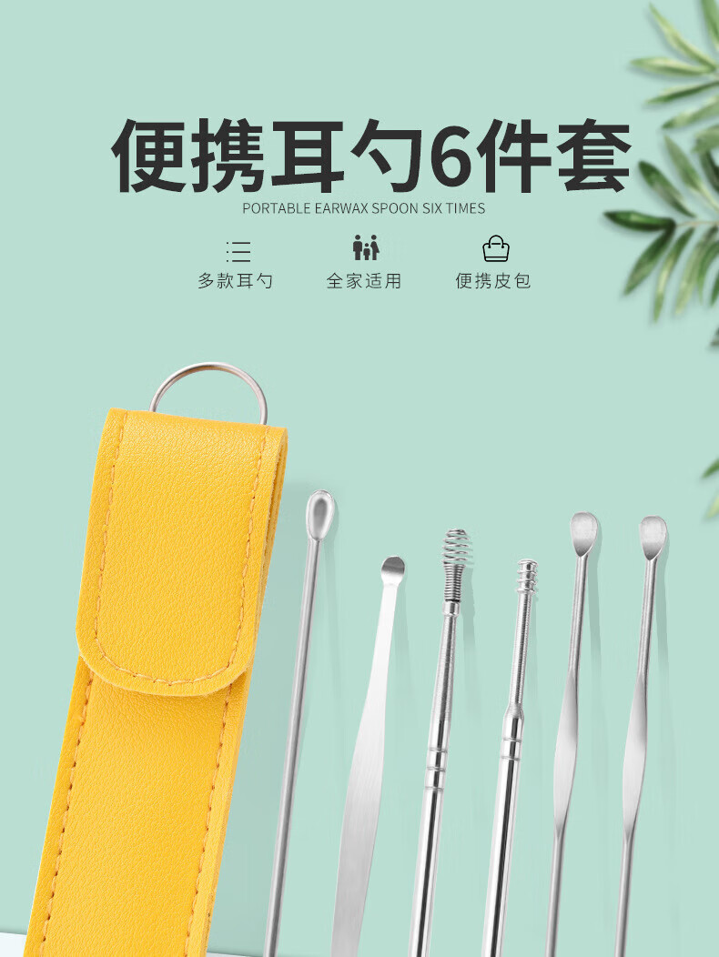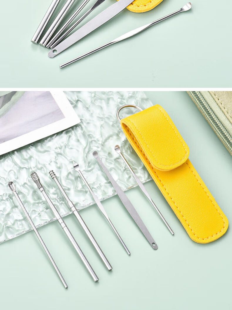 Imeka Ear Pick 6-piece Set Ear Picking Tool Spiral Professional Household Stainless Steel Ear Picking Tool Leather Case Thickened Ear Pick 6-piece Set 1 Set