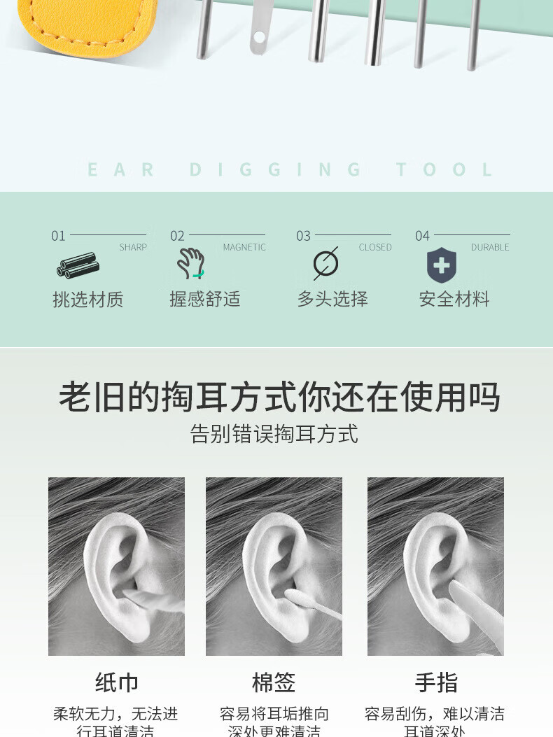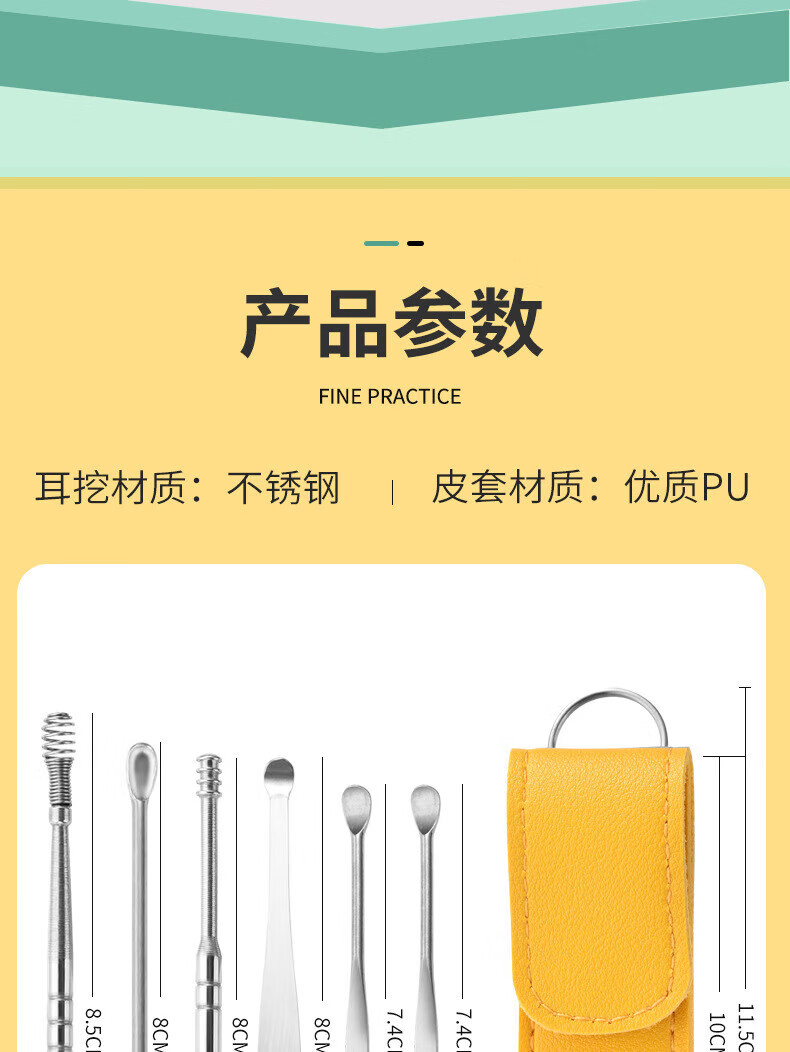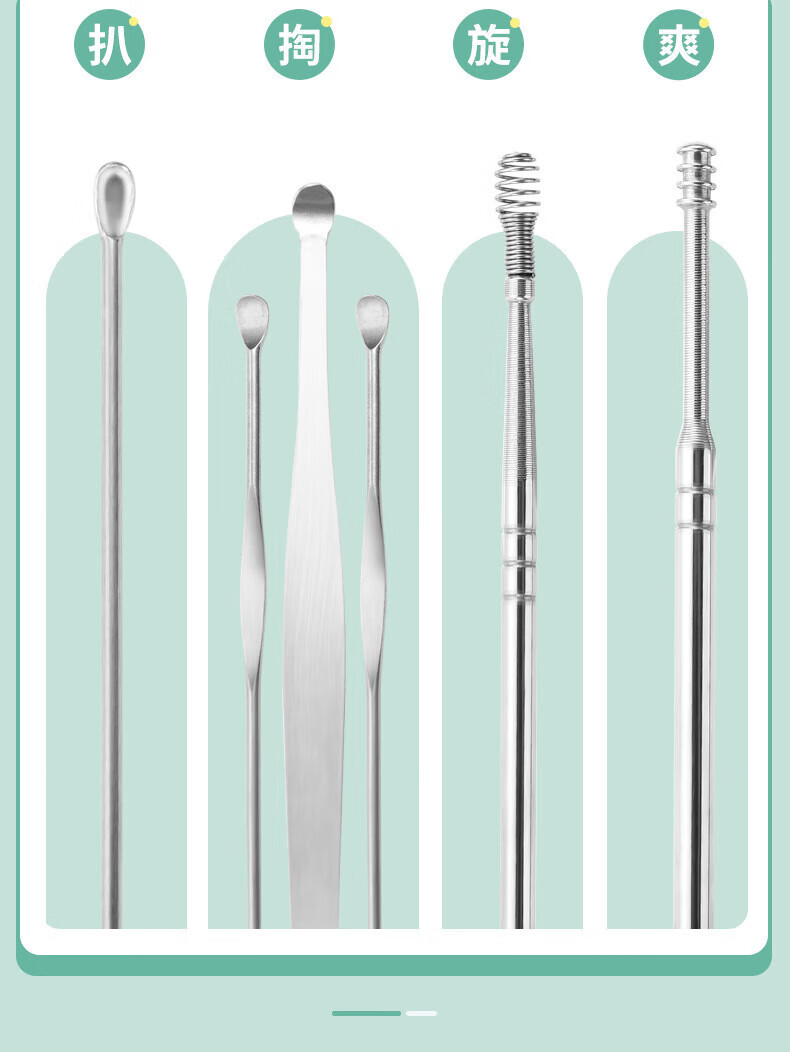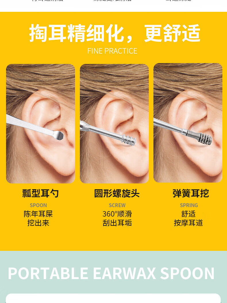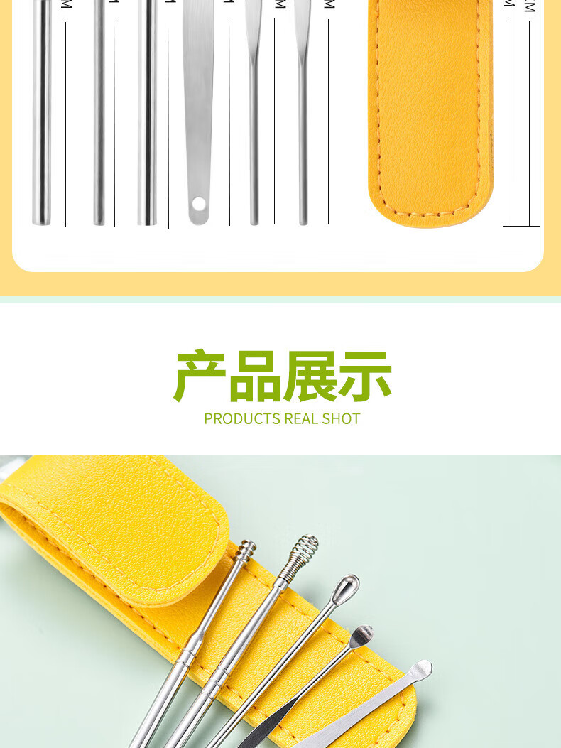 Imeka Ear Pick 6-piece Set Ear Picking Tool Spiral Professional Household Stainless Steel Ear Picking Tool Leather Case Thickened Ear Pick 6-piece Set 1 Set
