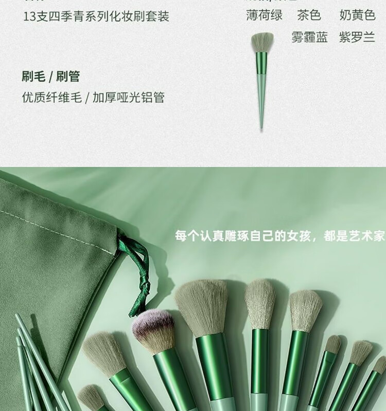 Thirteen pieces of Sijiqing makeup brush set, portable makeup brush, eye shadow brush, super soft powder blush brush, 13 pieces of glazed purple velvet bag, 13 pieces of glazed purple velvet