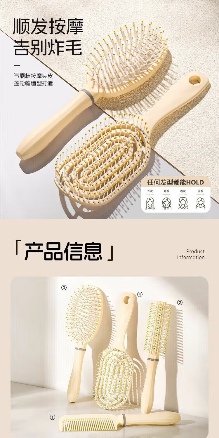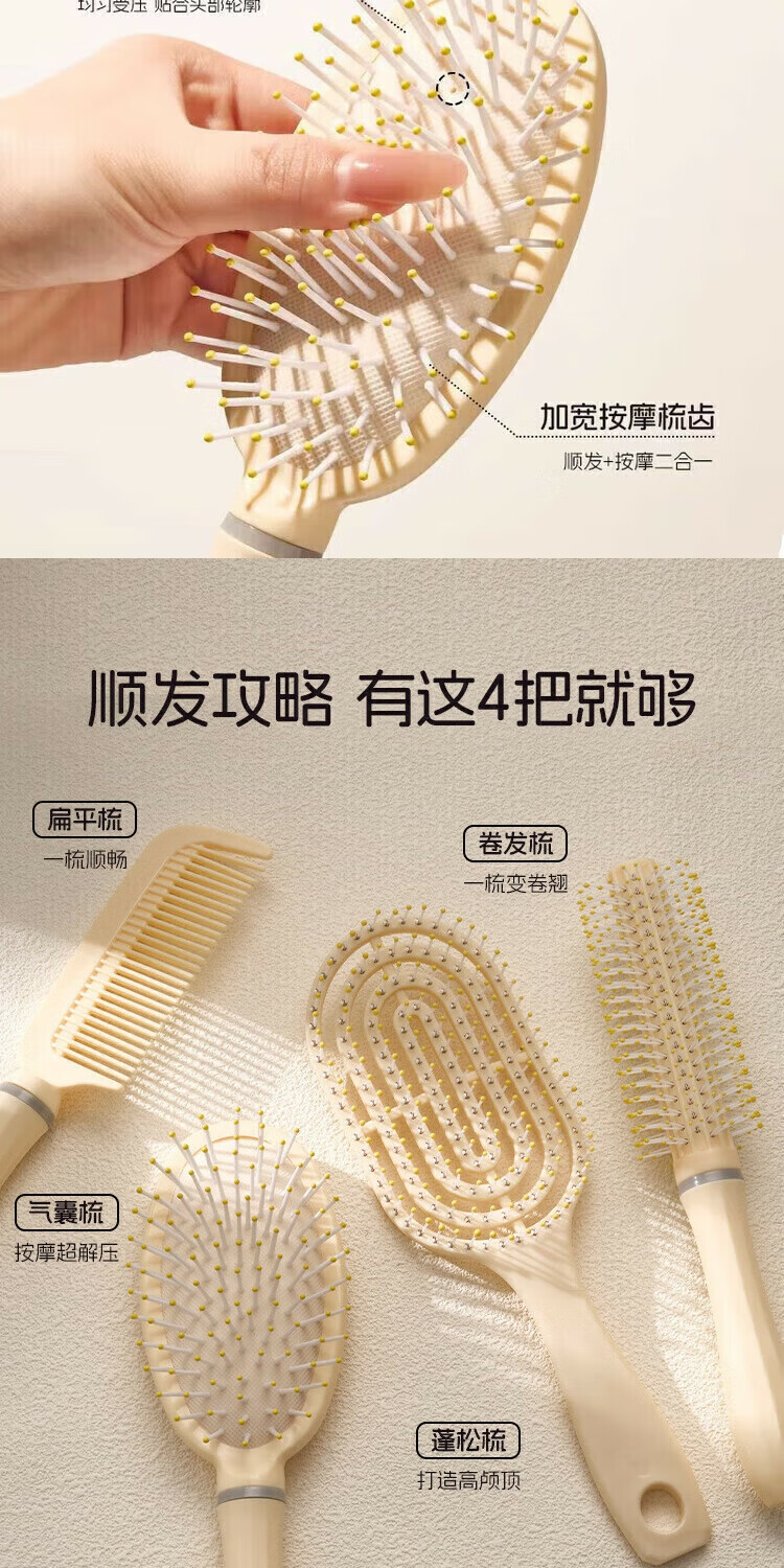 Yuan tribe Haopeng fluffy air cushion comb long hair comb set combination air bag straight hair comb student dormitory female home curling comb 3 pieces air cushion + ribs + curly hair