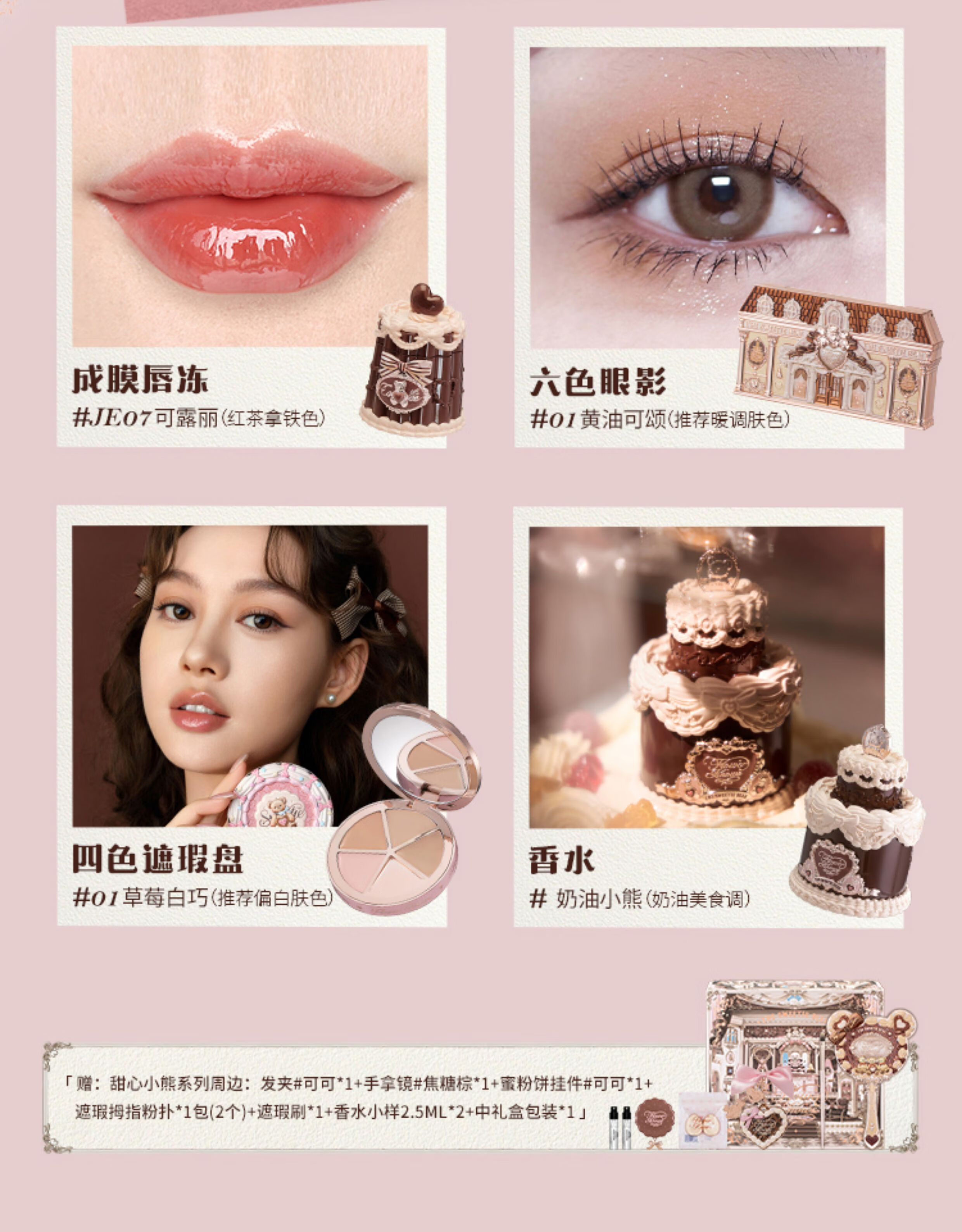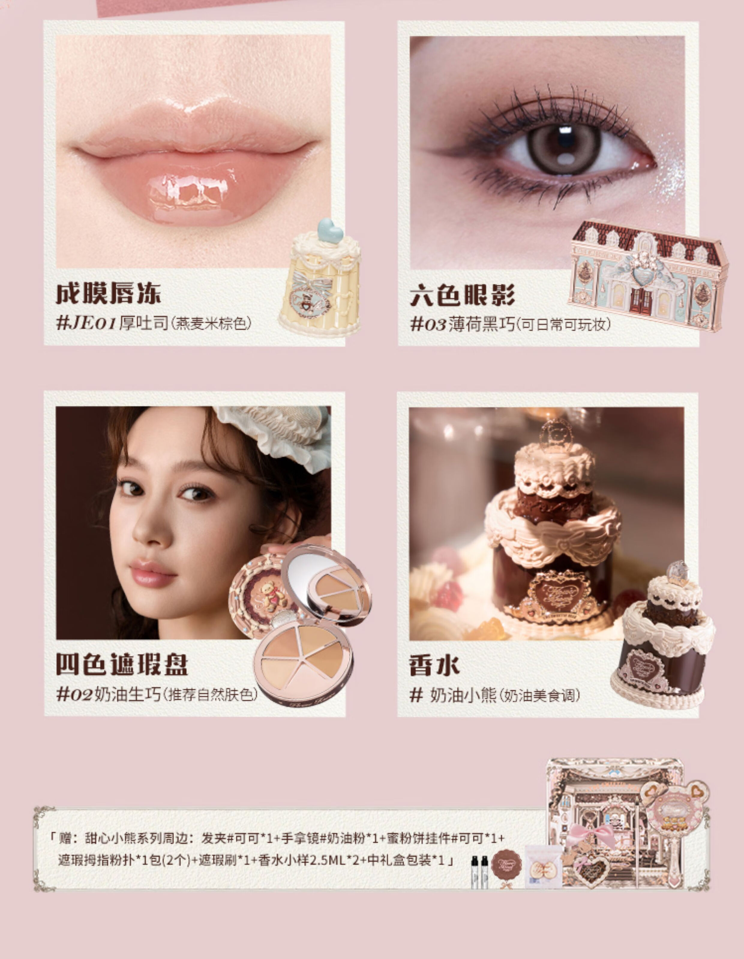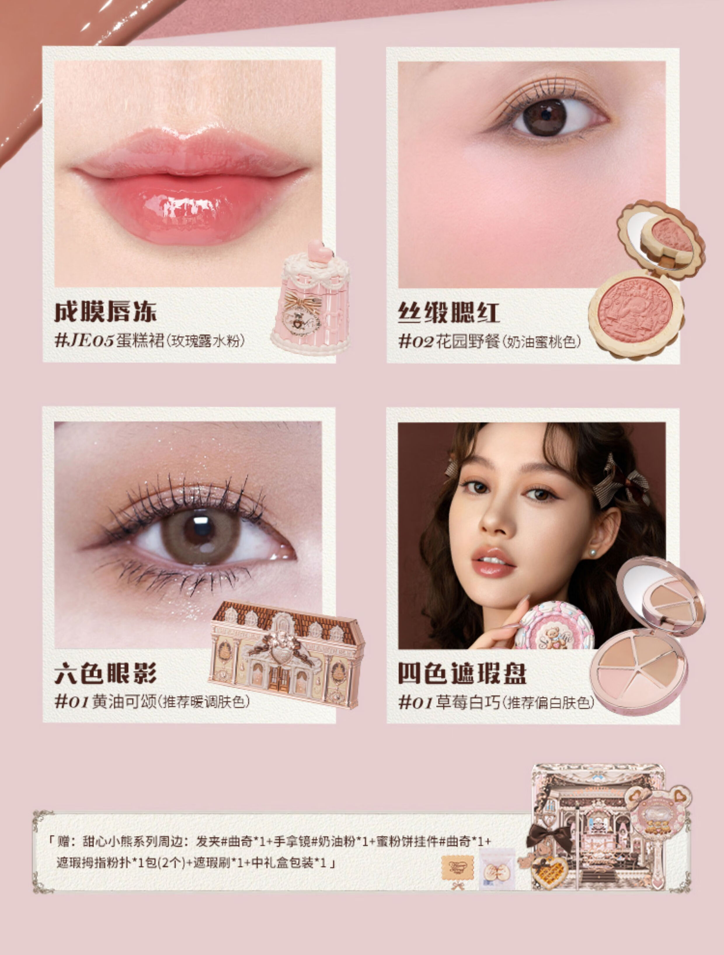 Flowers know that new products are on sale, sweet bear cookie gift box, cosmetics set, lip jelly, eye shadow, blush, concealer palette, perfume complete set, butter bread 1 piece